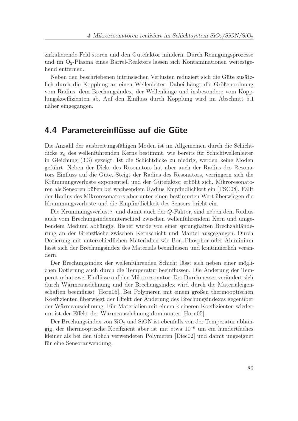 4 Mikroresonatoren realisiert im Schichtsystem SiO2/SiON/SiO2
