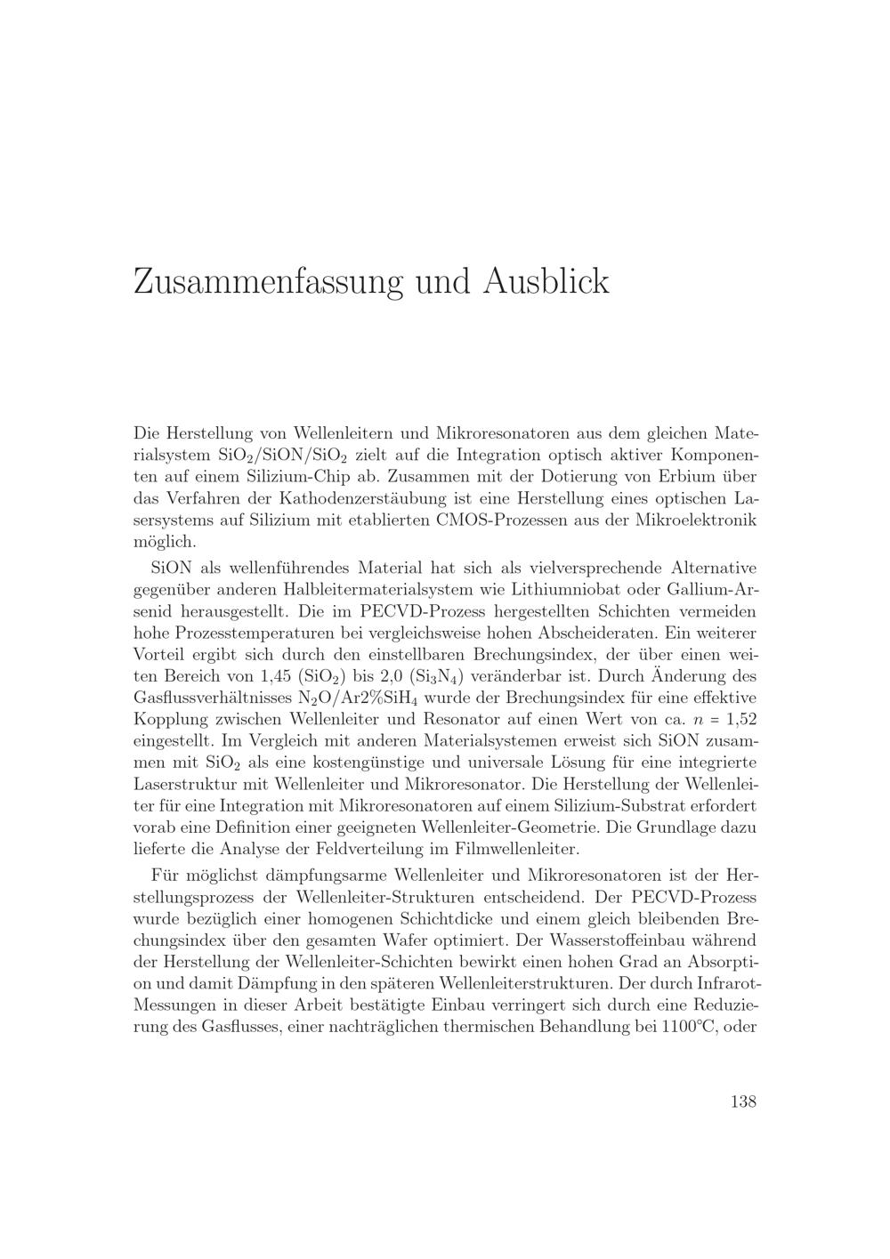 Herstellung optischer SiON-Komponenten für Laserstrukturen auf Silizium