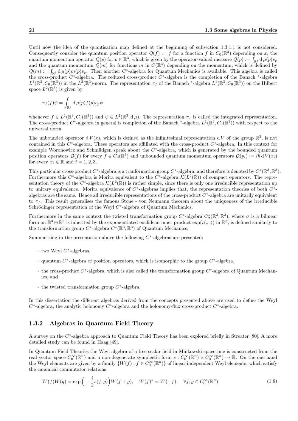 Some algebras in Physics