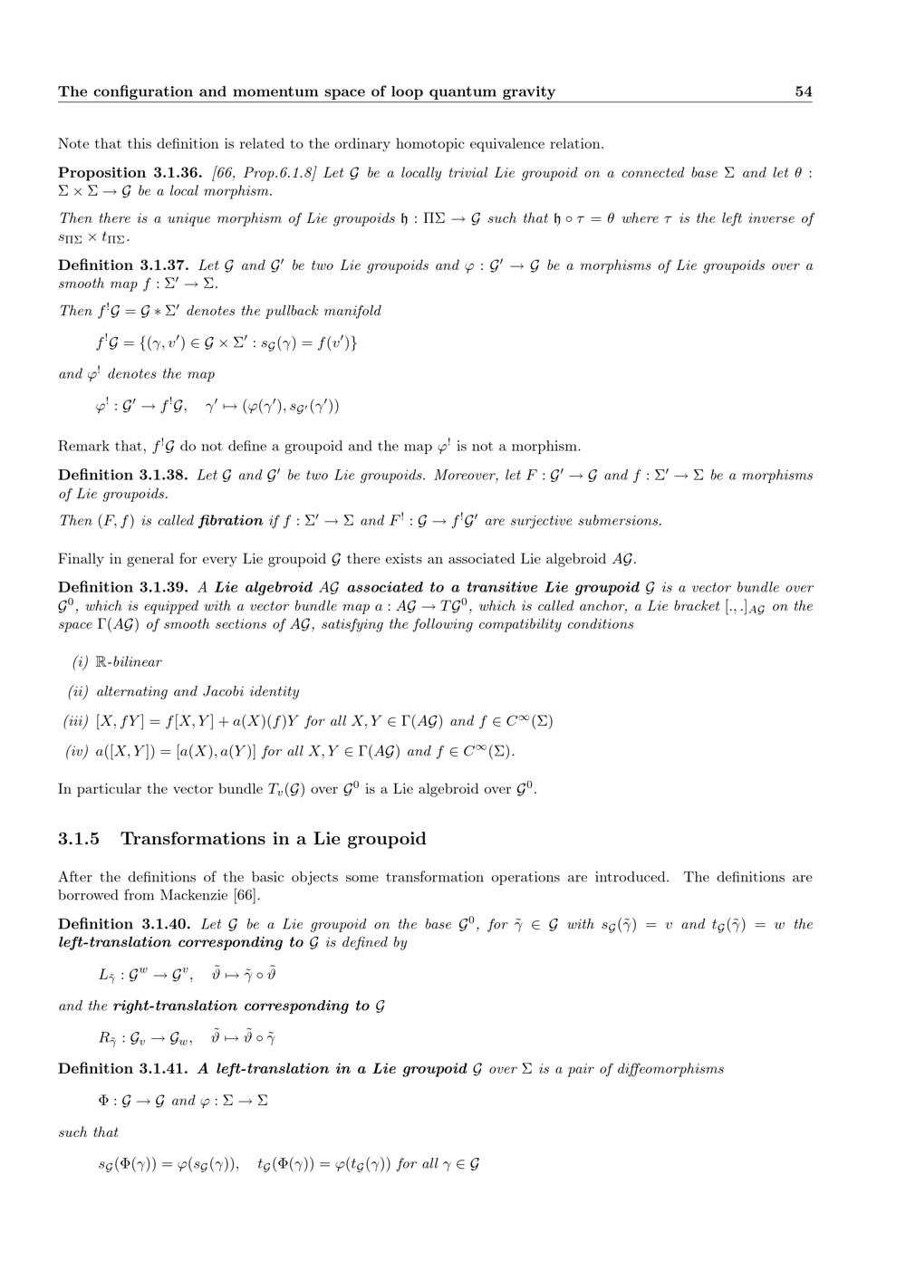 Transformations in a Lie groupoid