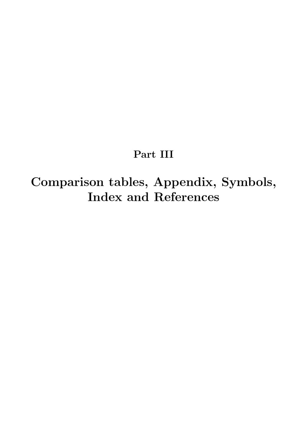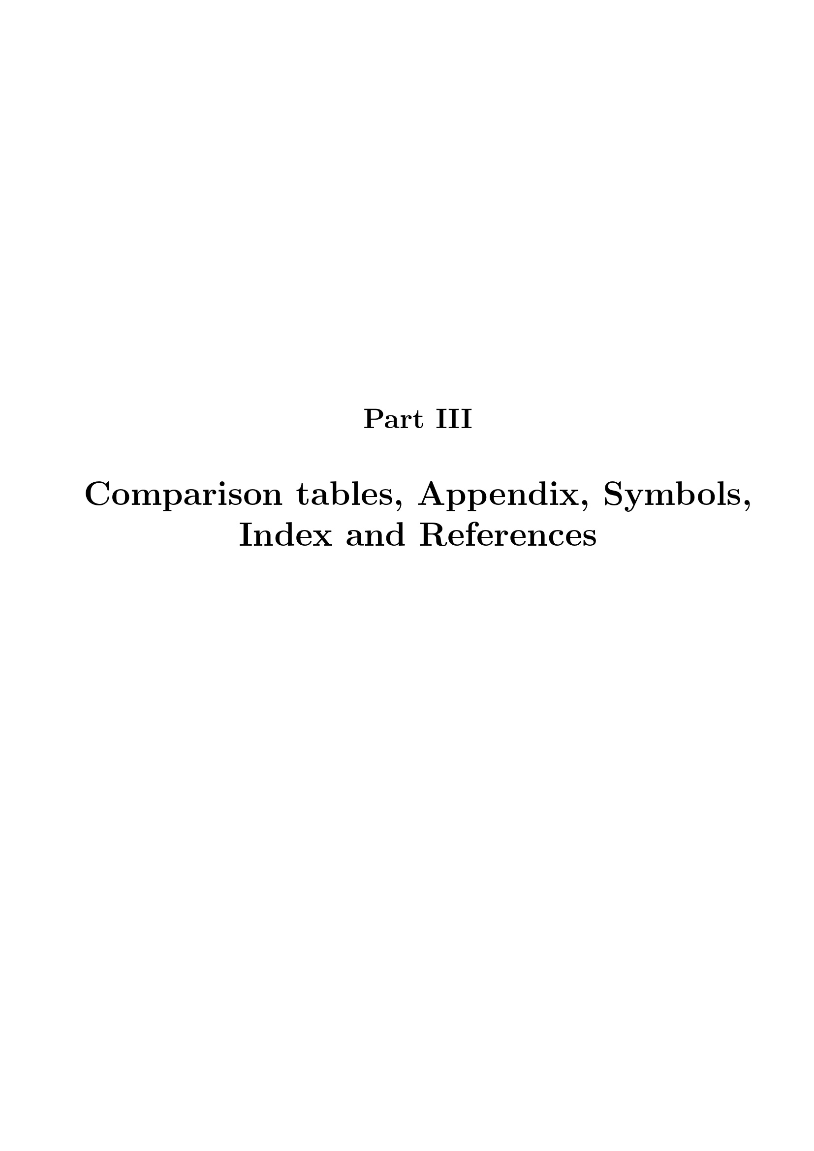 III Comparison tables, Appendix, Symbols, Index and References