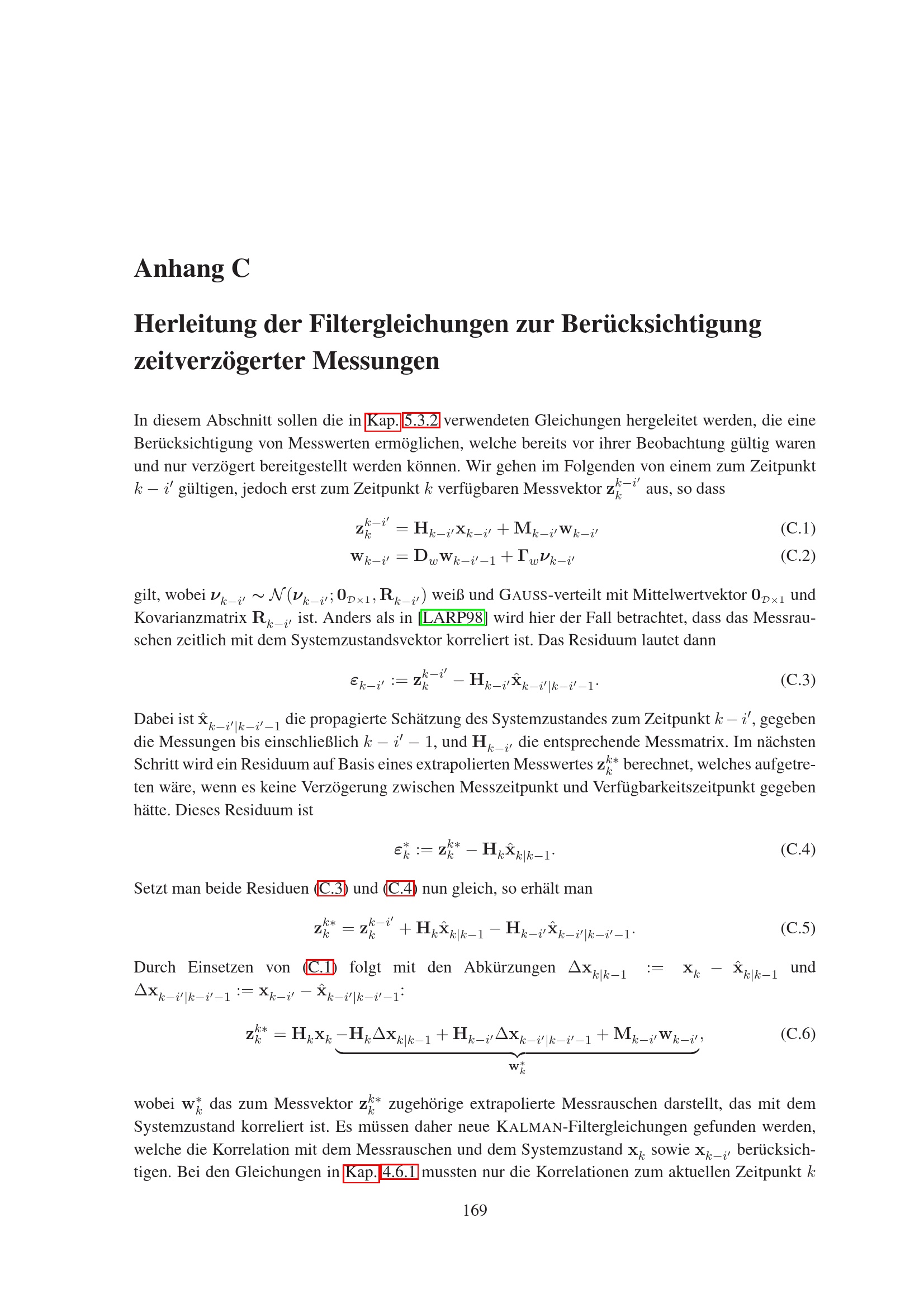 Herleitung der Filtergleichungen zur Berücksichtigung zeitverzögerter Messungen