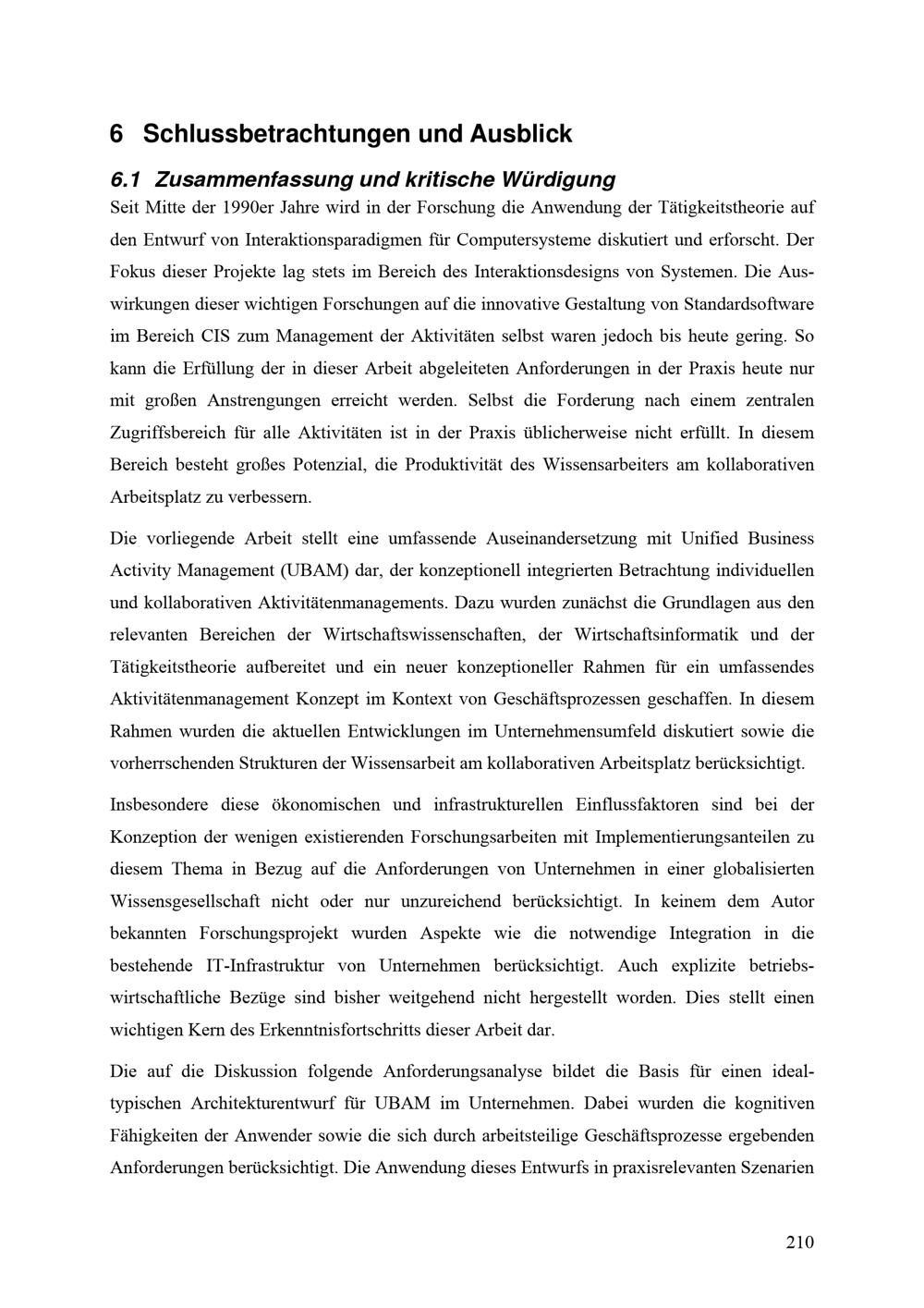 6.1 Zusammenfassung und kritische Würdigung