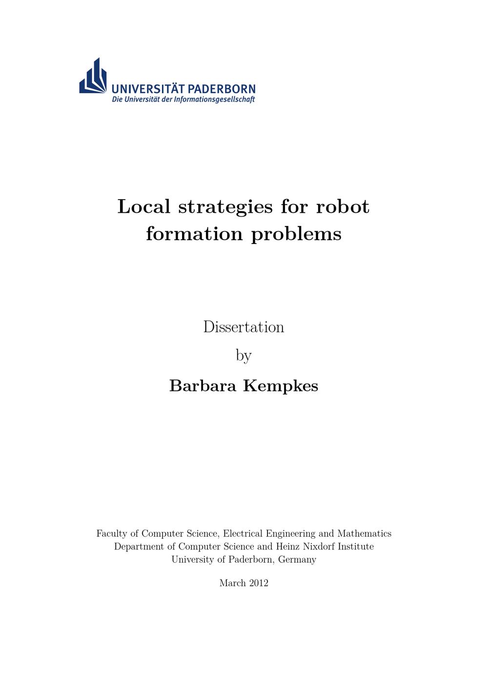 Local strategies for robot formation problems / by Barbara Kempkes