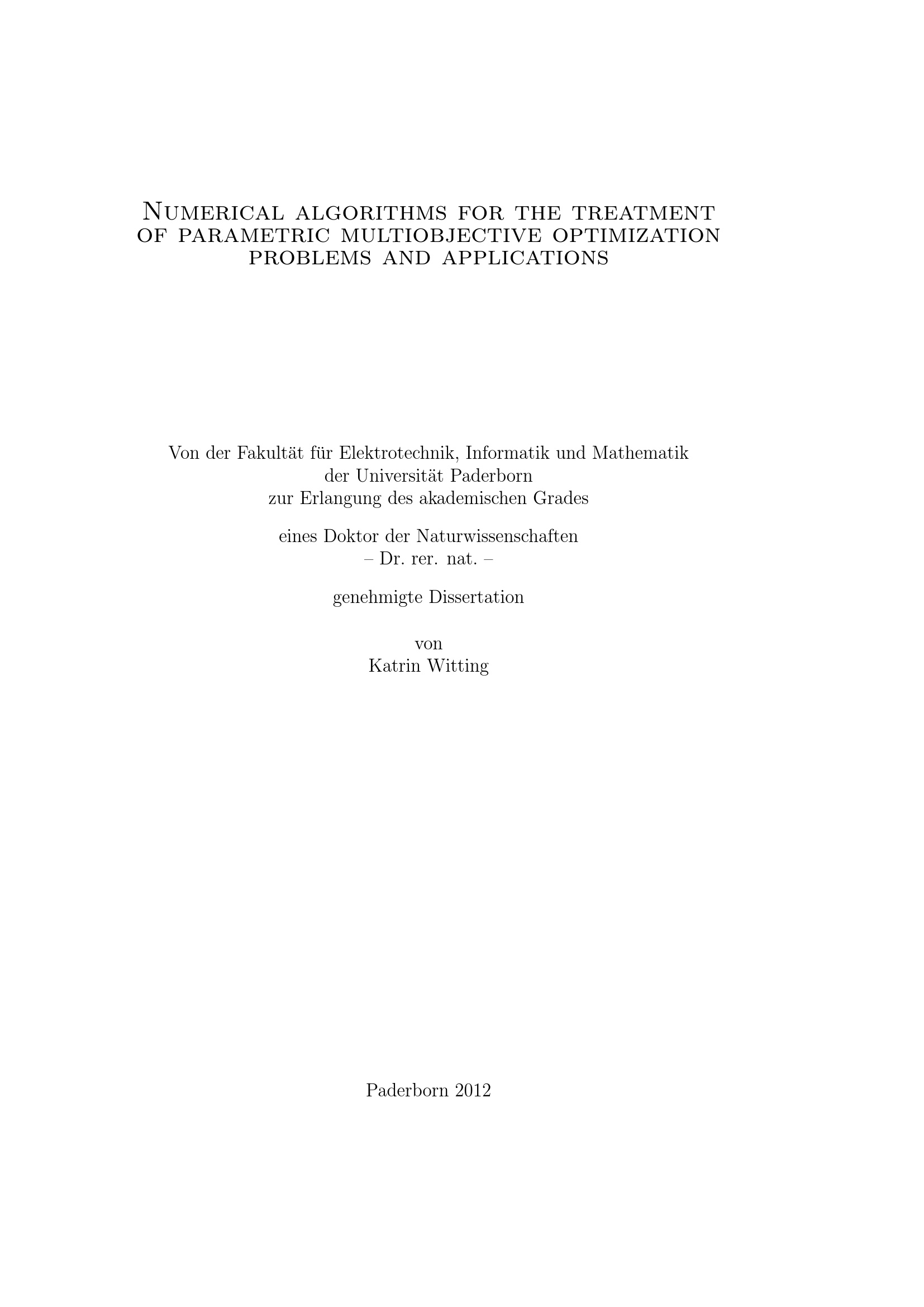 Numerical algorithms for the treatment of parametric multiobjective optimization problems and applications