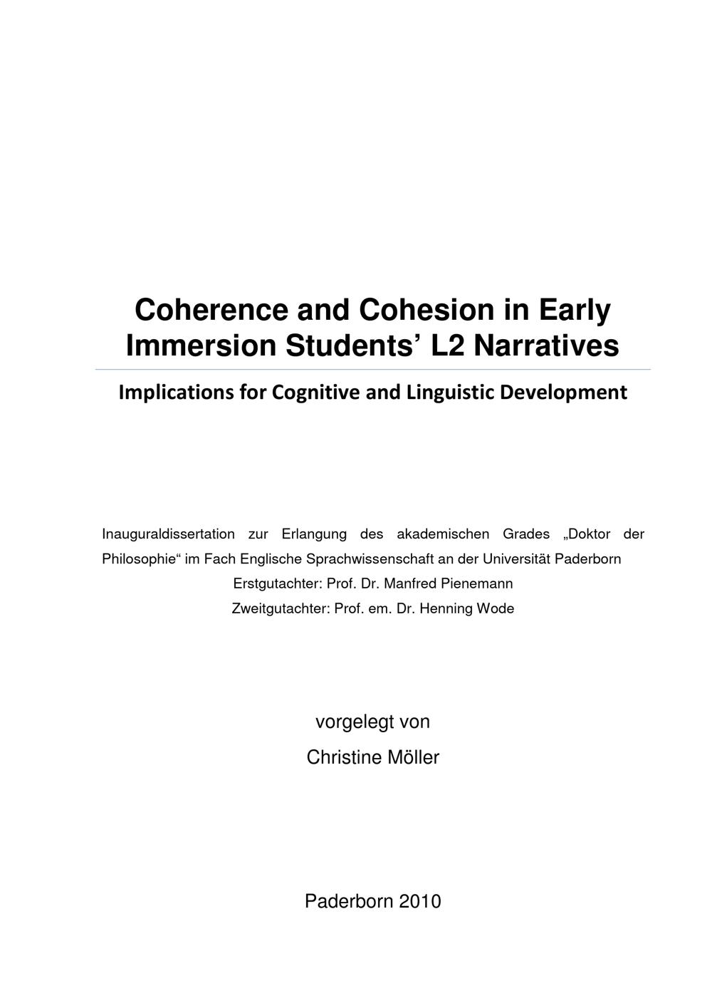 Coherence and cohesion in early immersion students' L2 narratives : Implications for cognitive and linguistic development
