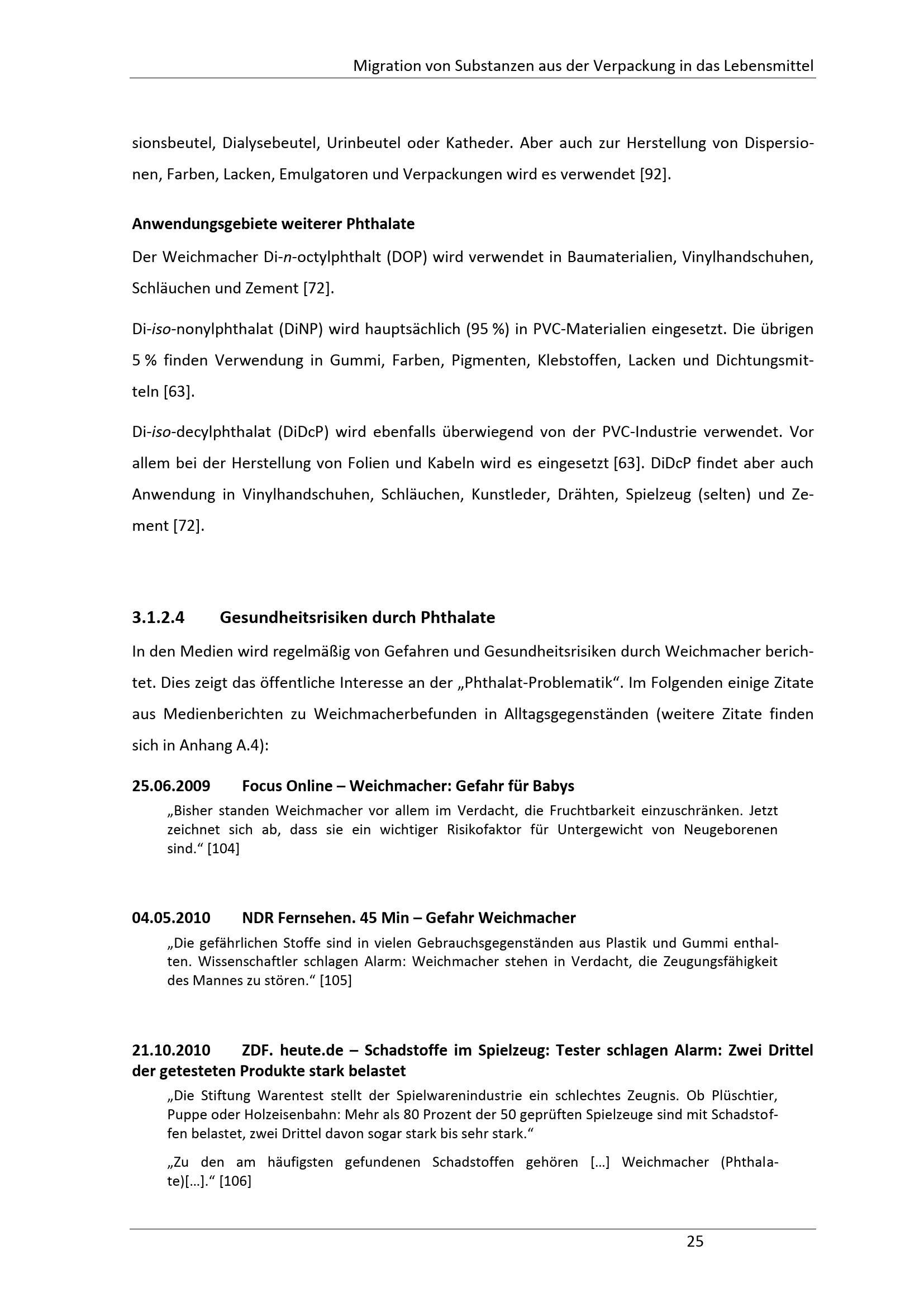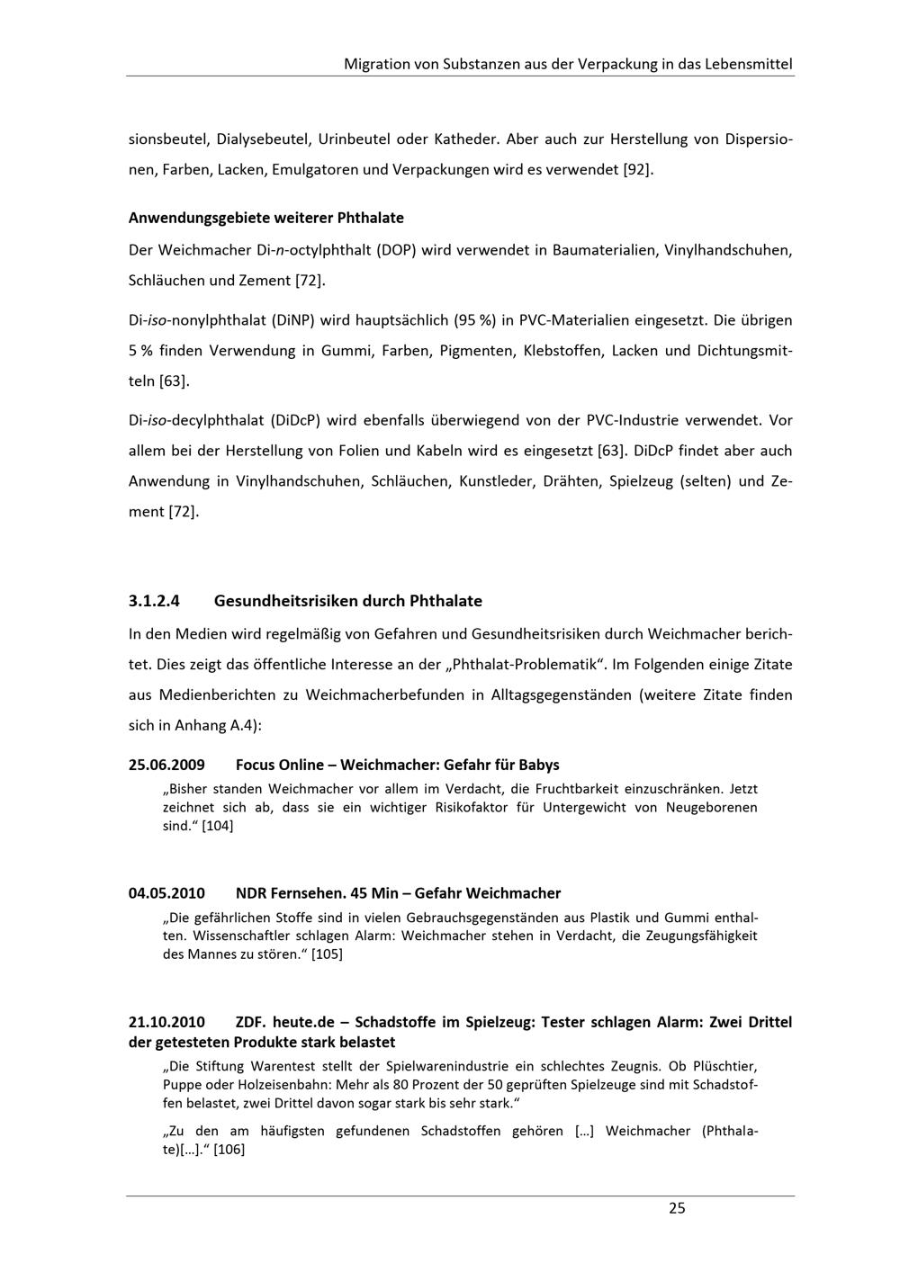 3.1.2.4 Gesundheitsrisiken durch Phthalate