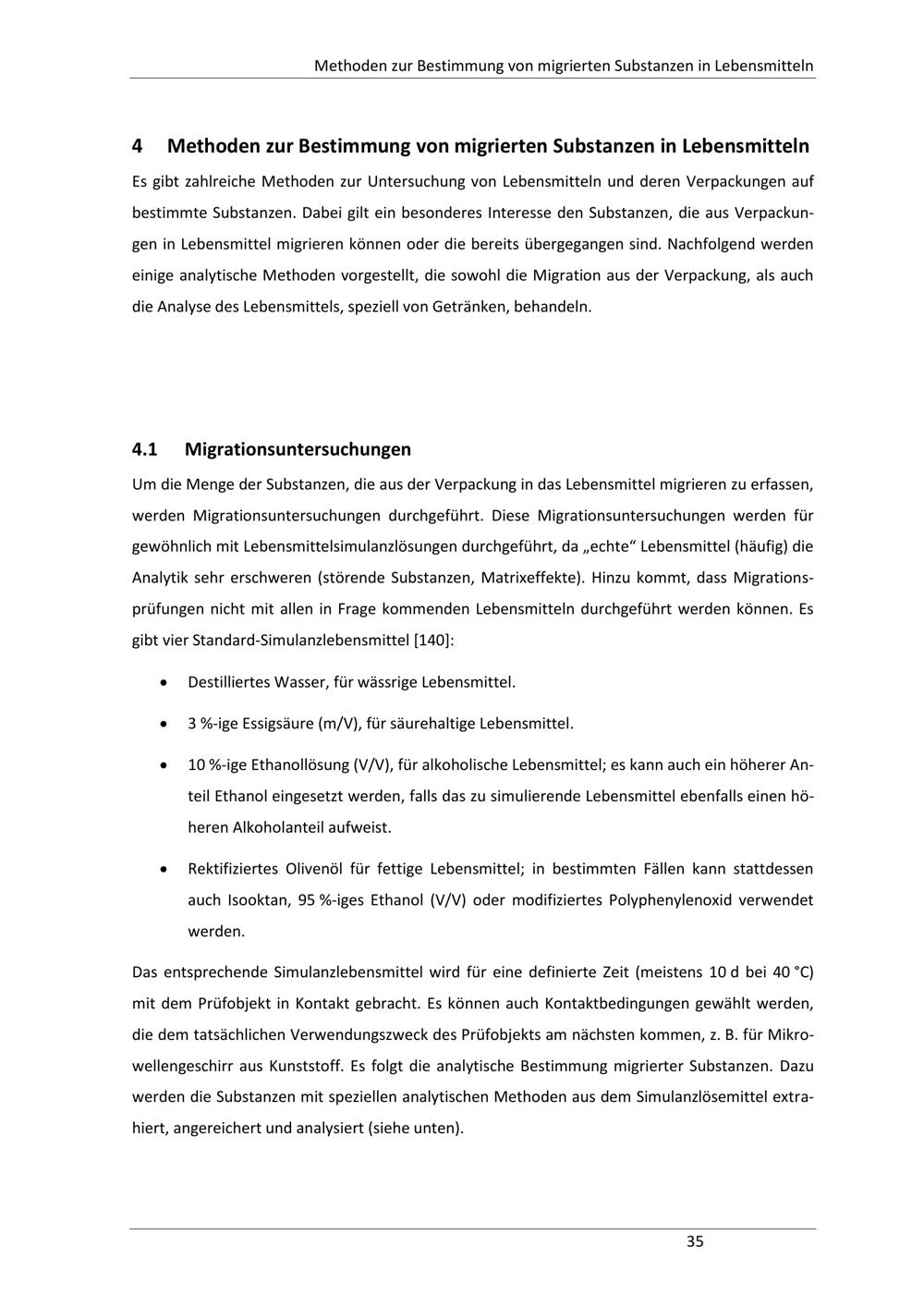 4 Methoden zur Bestimmung von migrierten Substanzen in Lebensmitteln