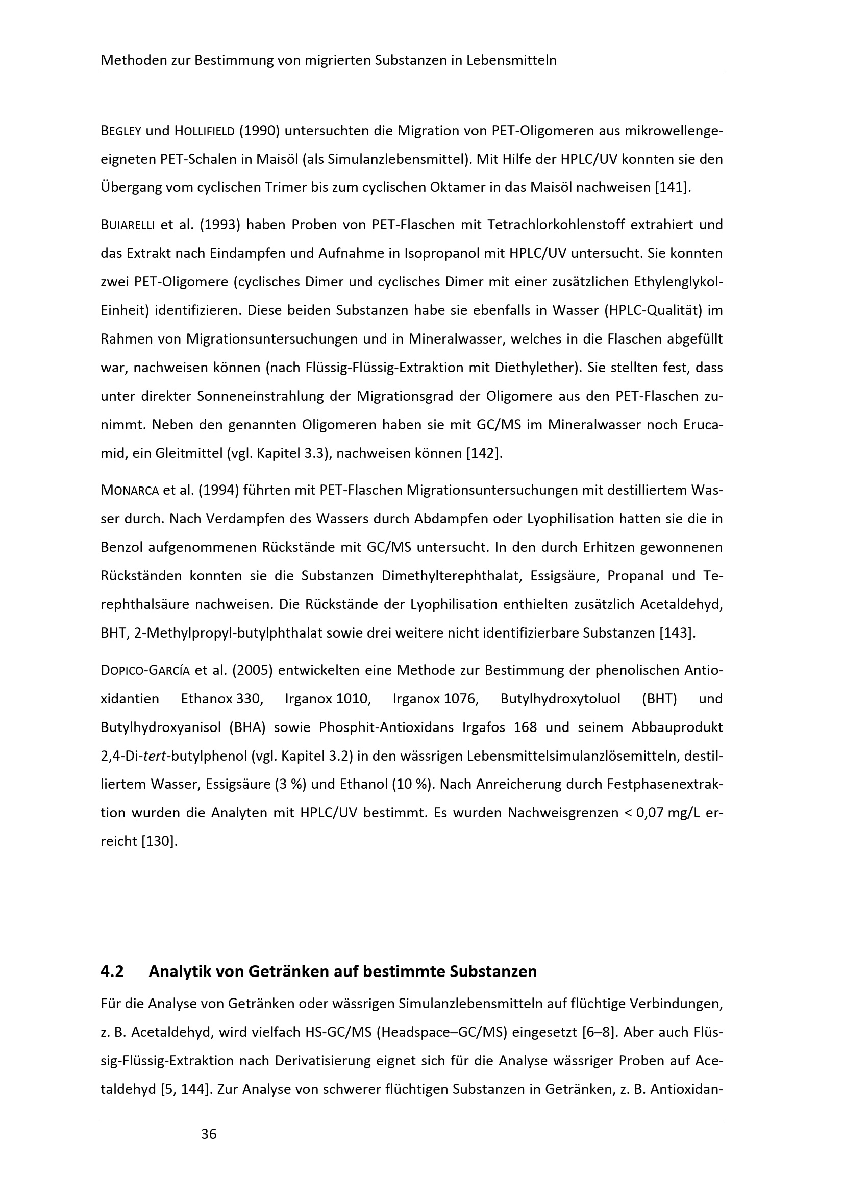 4 Methoden zur Bestimmung von migrierten Substanzen in Lebensmitteln