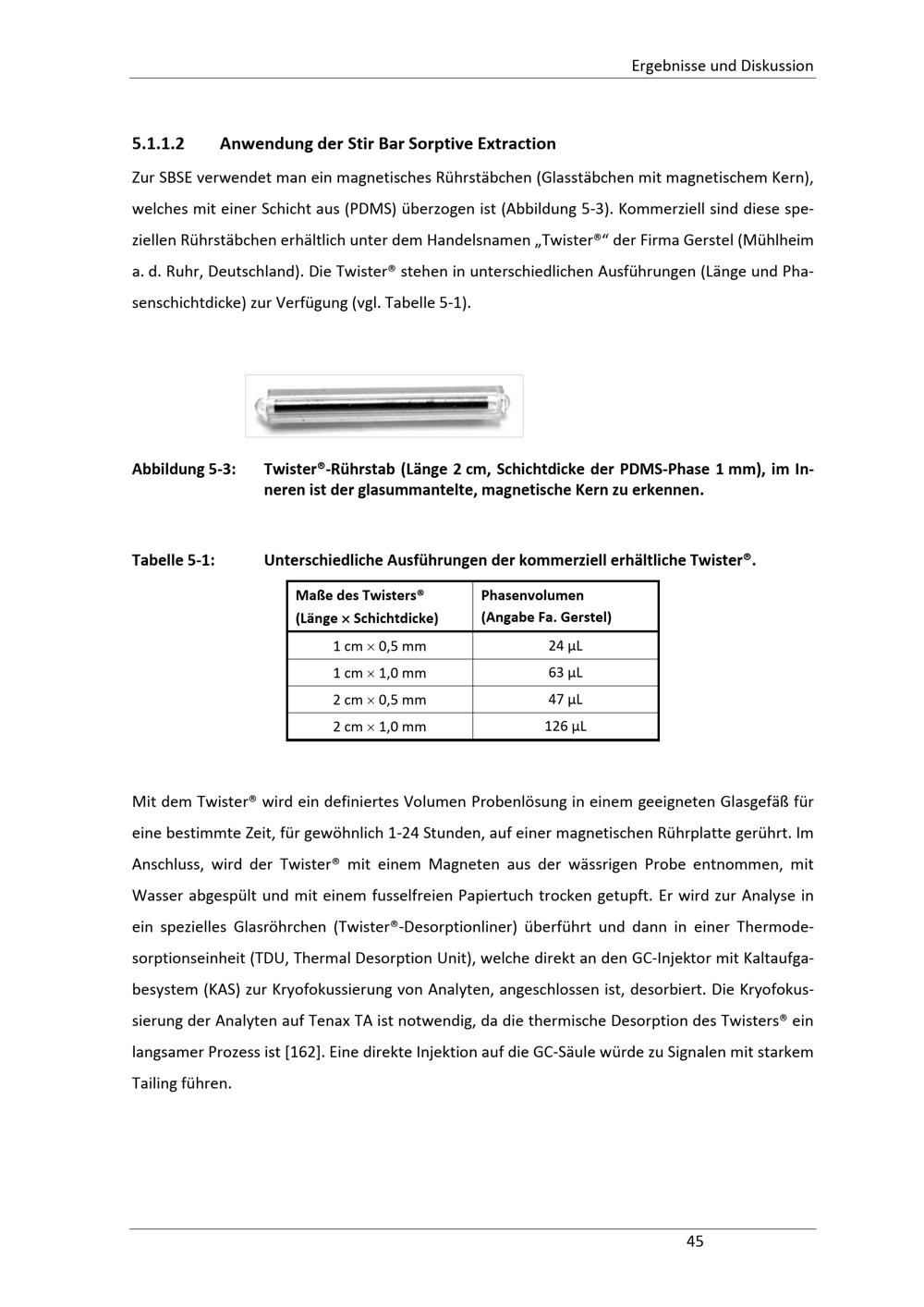 5.1.1.2 Anwendung der Stir Bar Sorptive Extraction