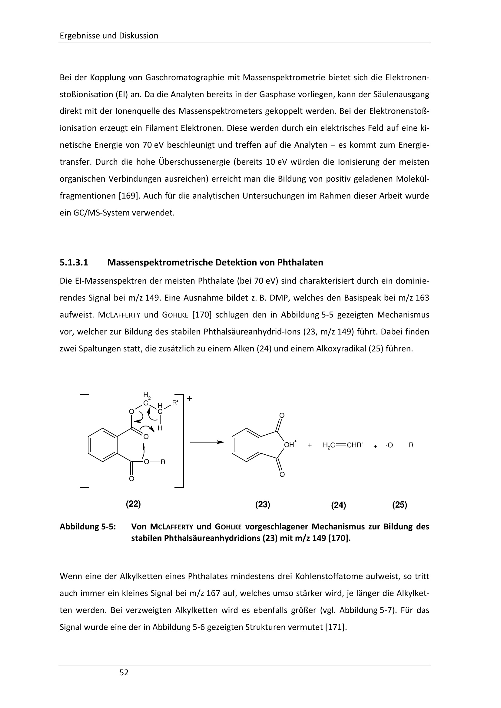 5.1.3.1 Massenspektrometrische Detektion von Phthalaten