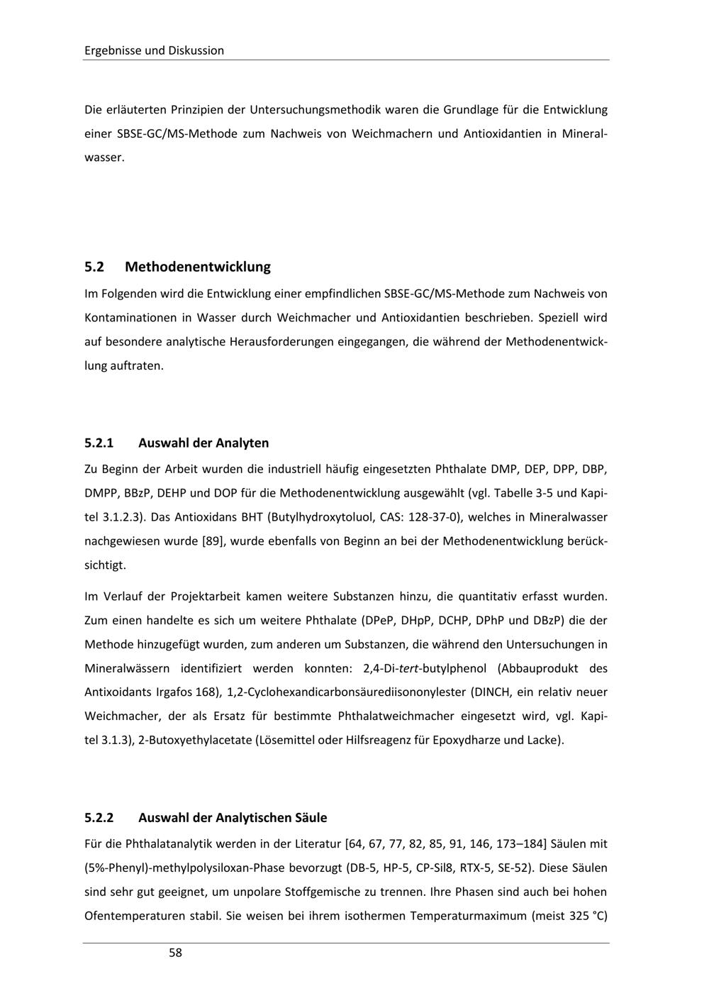 Entwicklung und Anwendung einer SBSE-TD/GC/MS-Methode zur Bestimmung von Weichmachern[...]