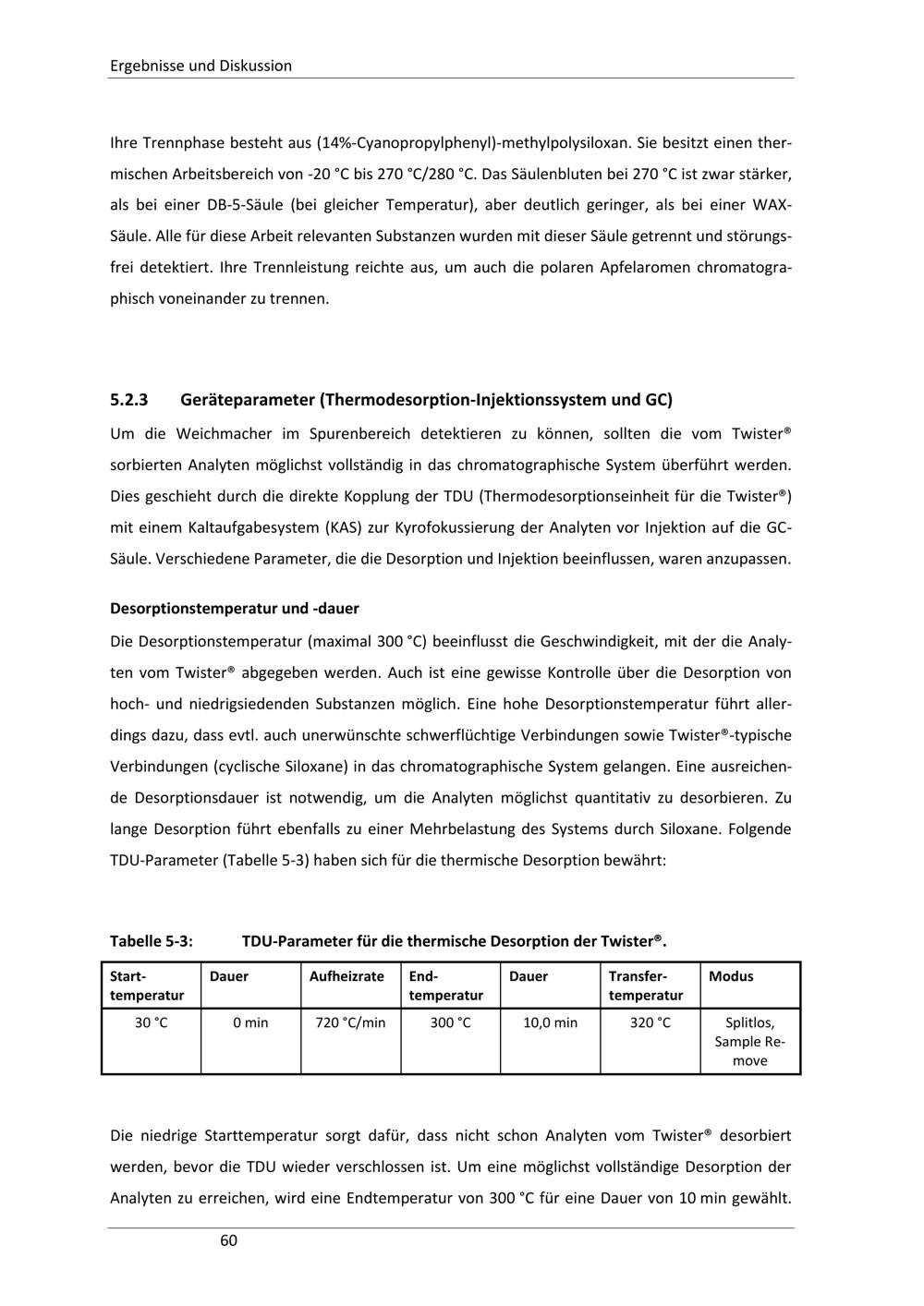 5.2.3 Geräteparameter (Thermodesorption-Injektionssystem und GC)