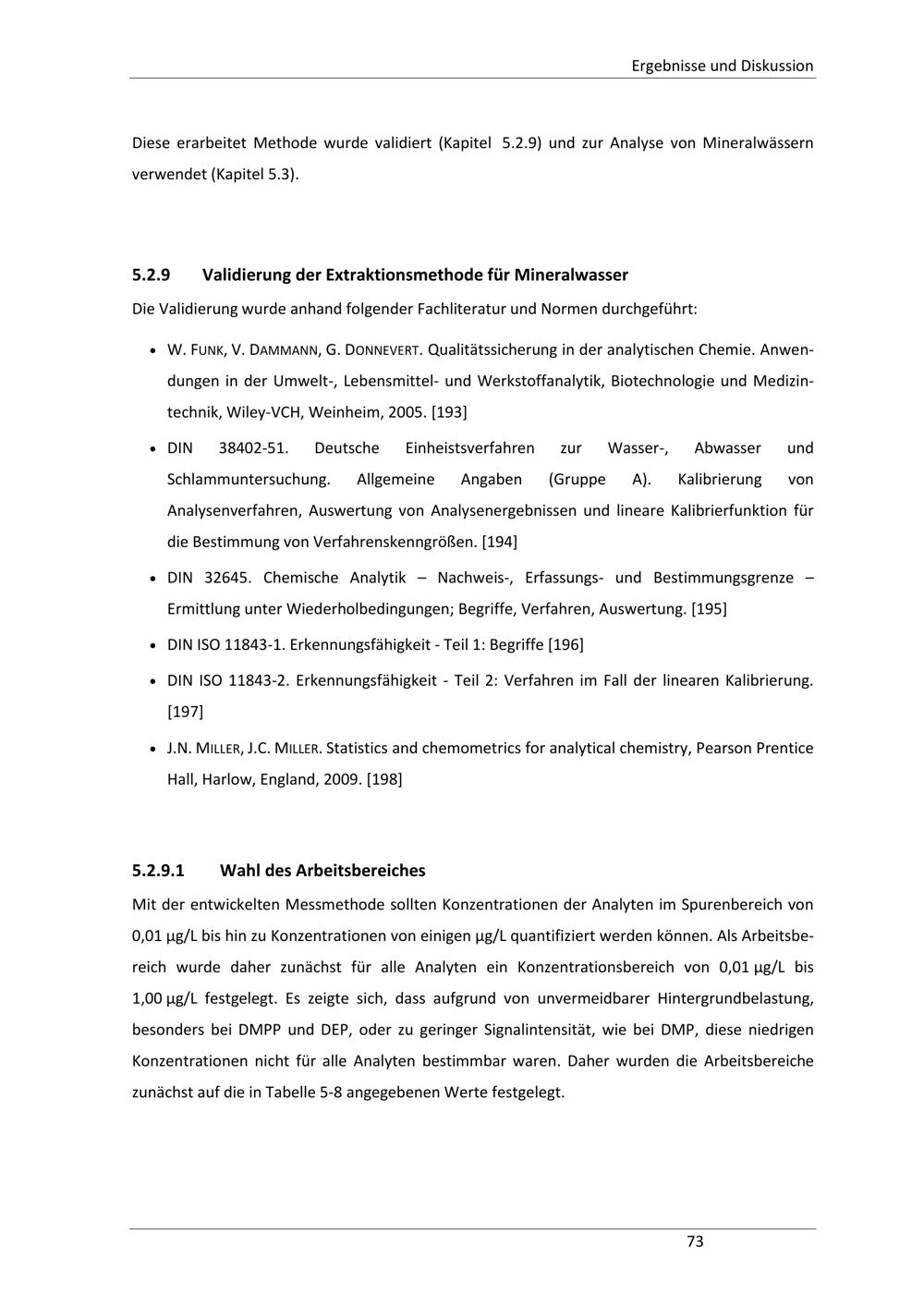 5.2.9 Validierung der Extraktionsmethode für Mineralwasser