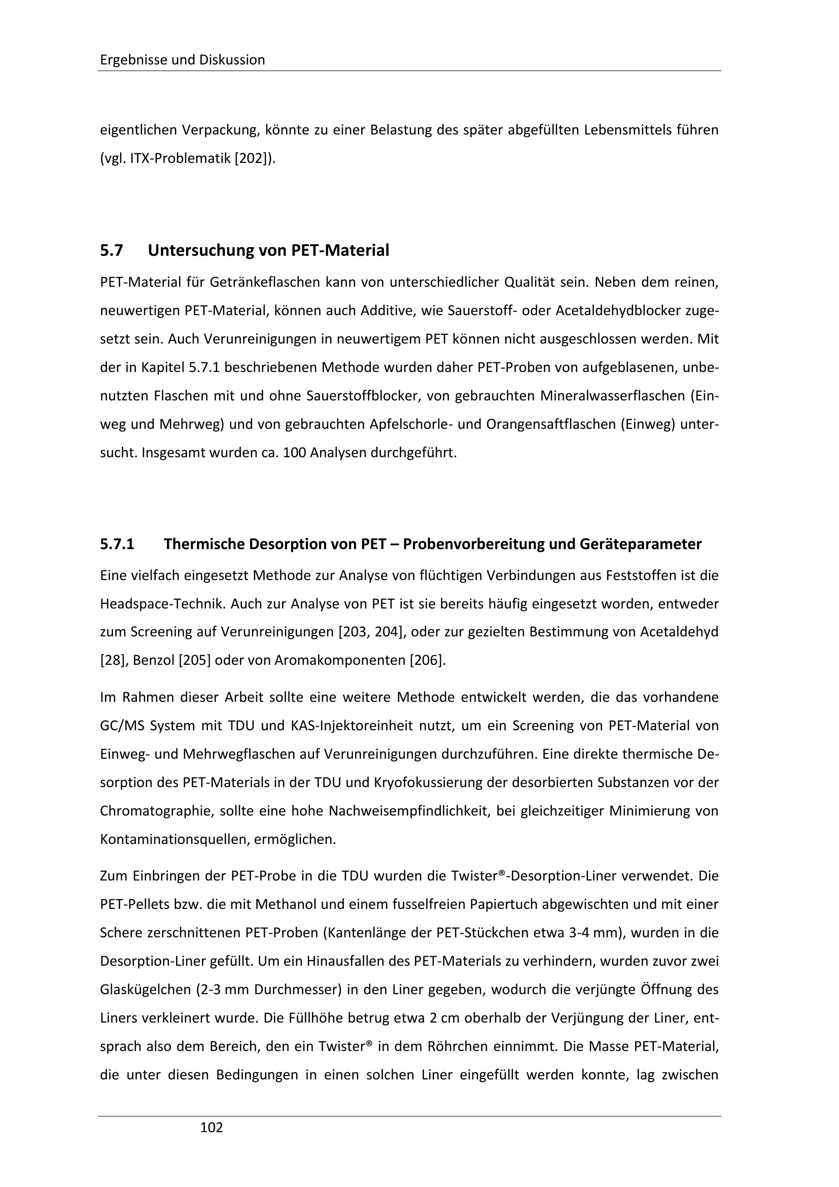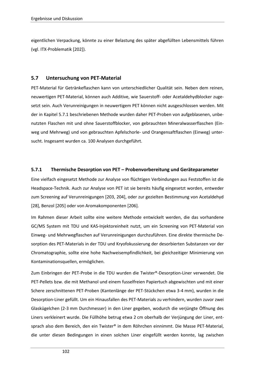 5.7.1 Thermische Desorption von PET – Probenvorbereitung und Geräteparameter