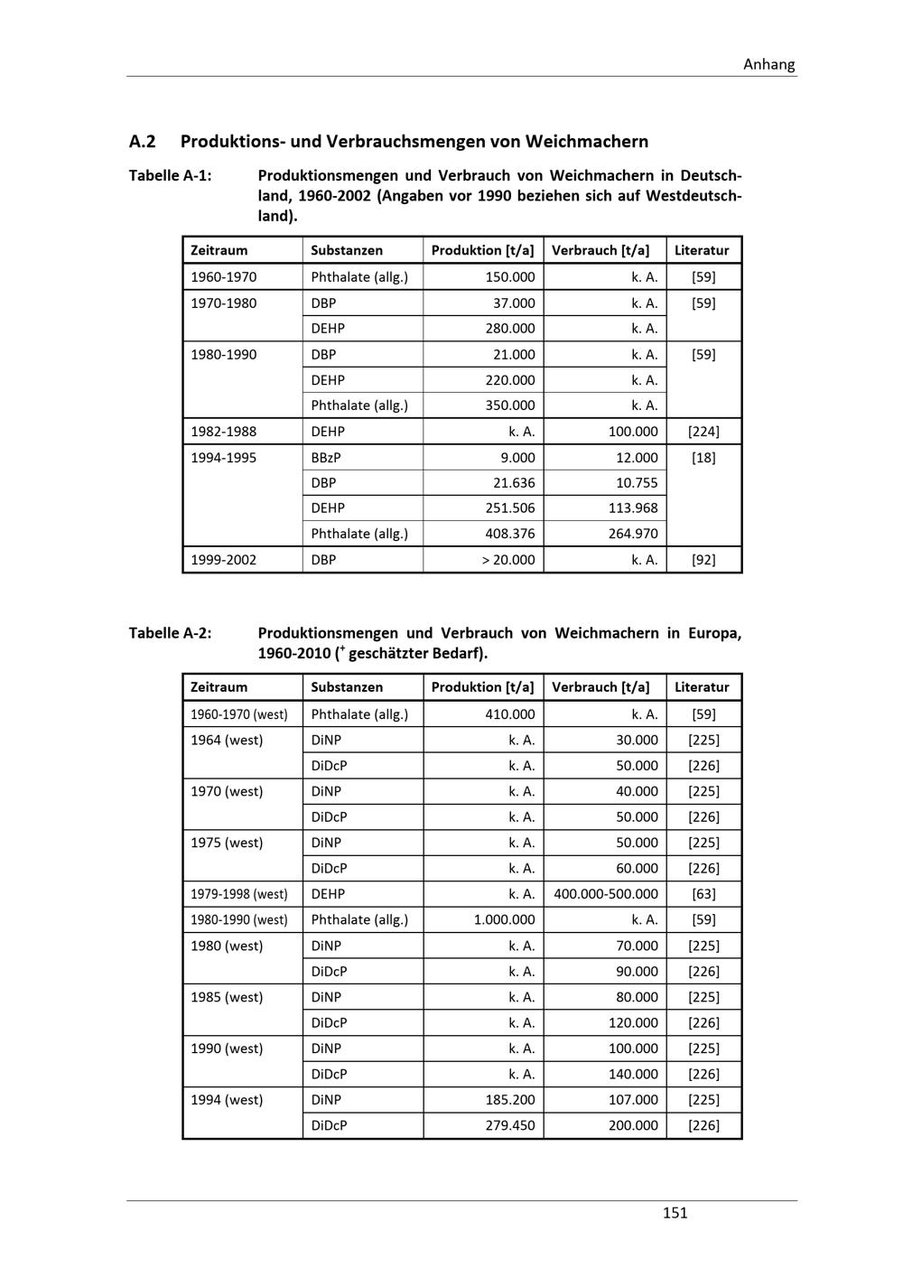 A.2 Produktions- und Verbrauchsmengen von Weichmachern