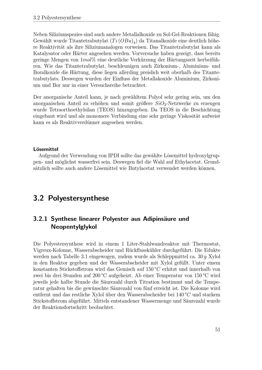 3.2.1 Synthese linearer Polyester aus Adipinsäure und Neopentylglykol