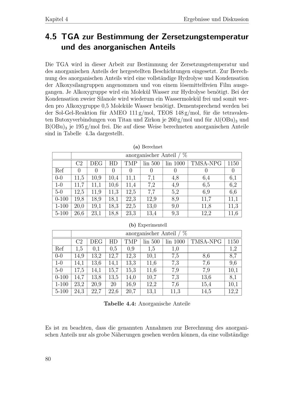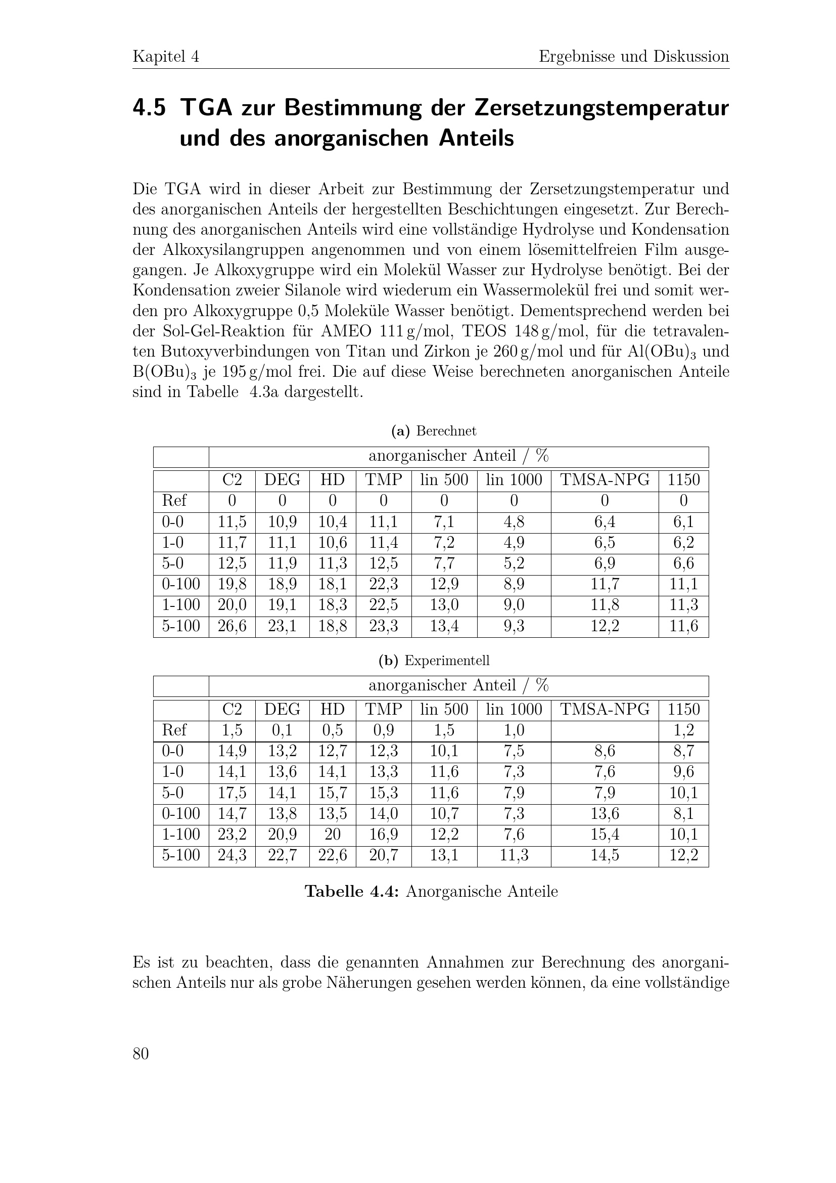 4.5 TGA zur Bestimmung der Zersetzungstemperatur und des anorganischen Anteils