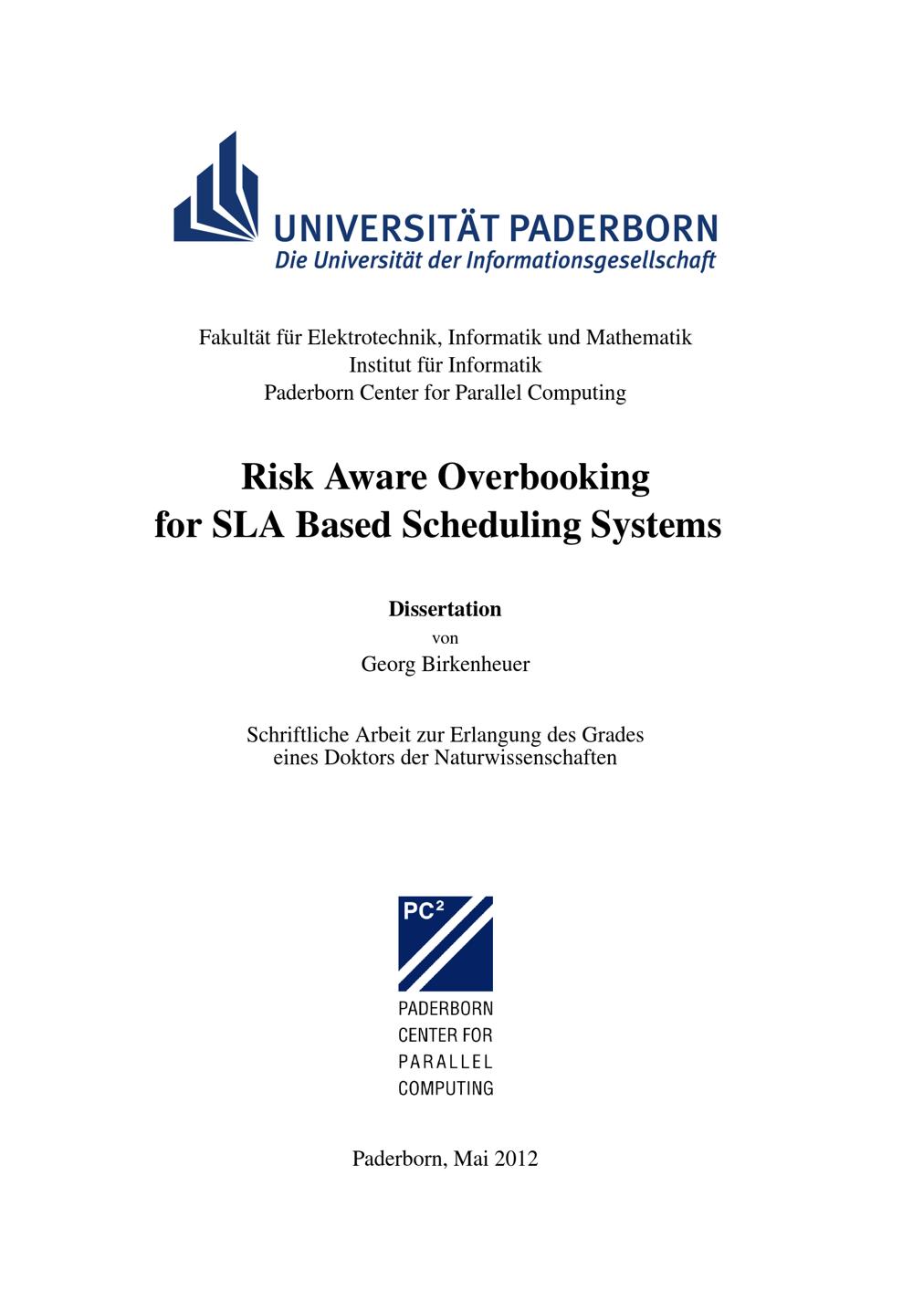 Risk aware overbooking for SLA based scheduling systems