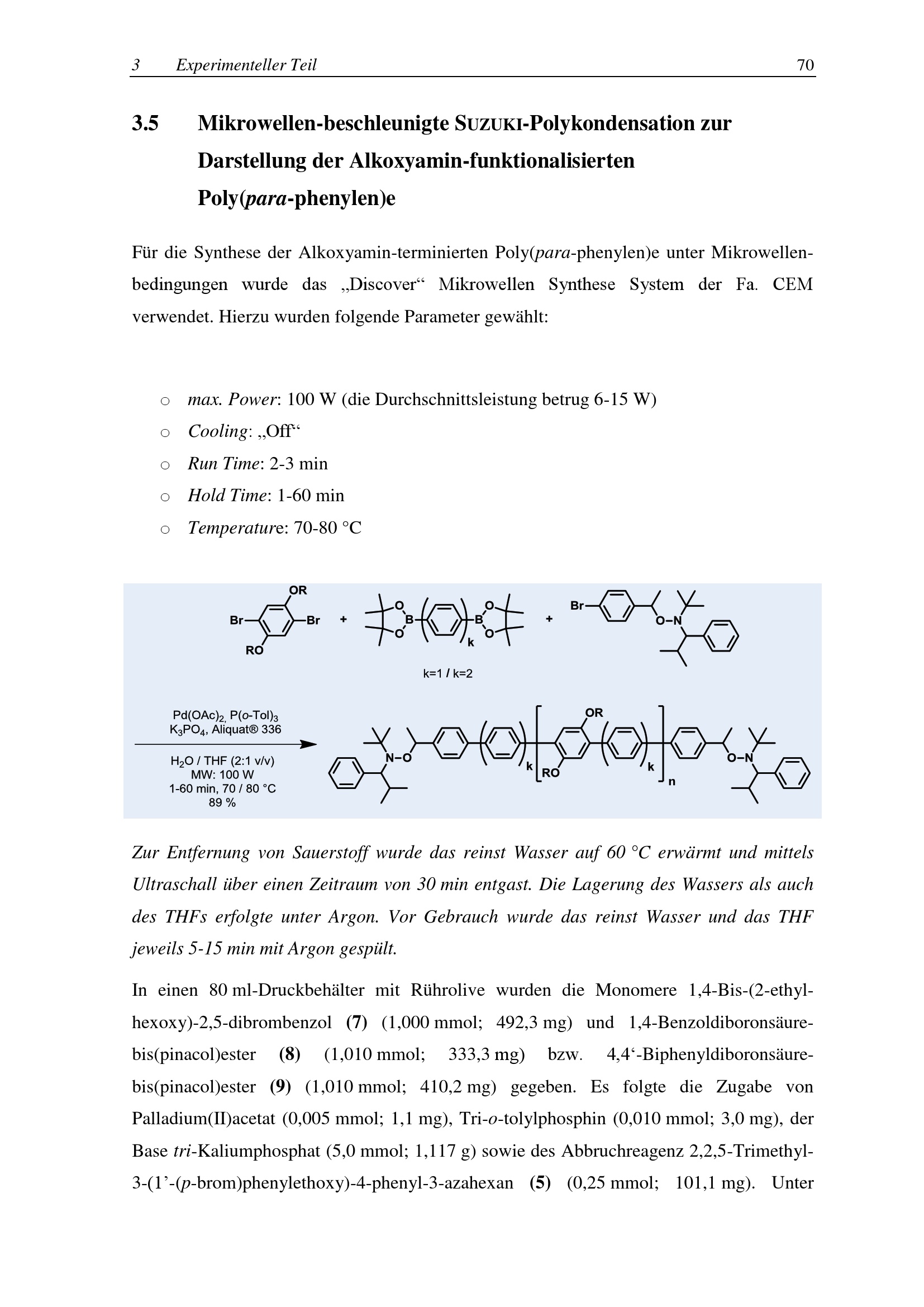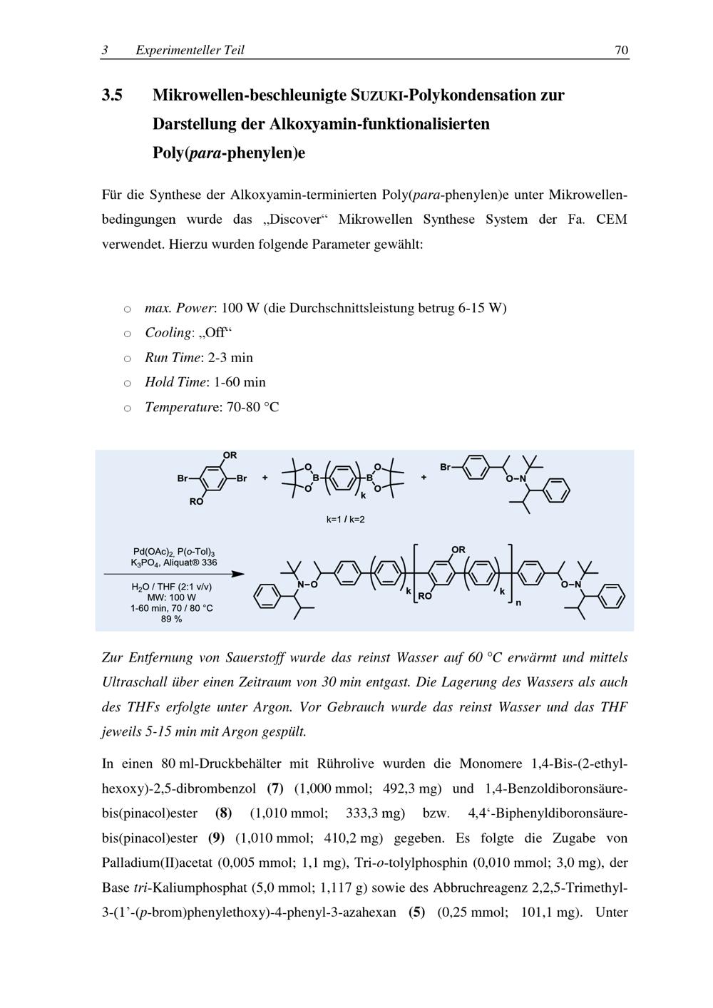 3.5 Mikrowellen-beschleunigte Suzuki-Polykondensation zur Darstellung der Alkoxyamin-funktionalisierten[...]