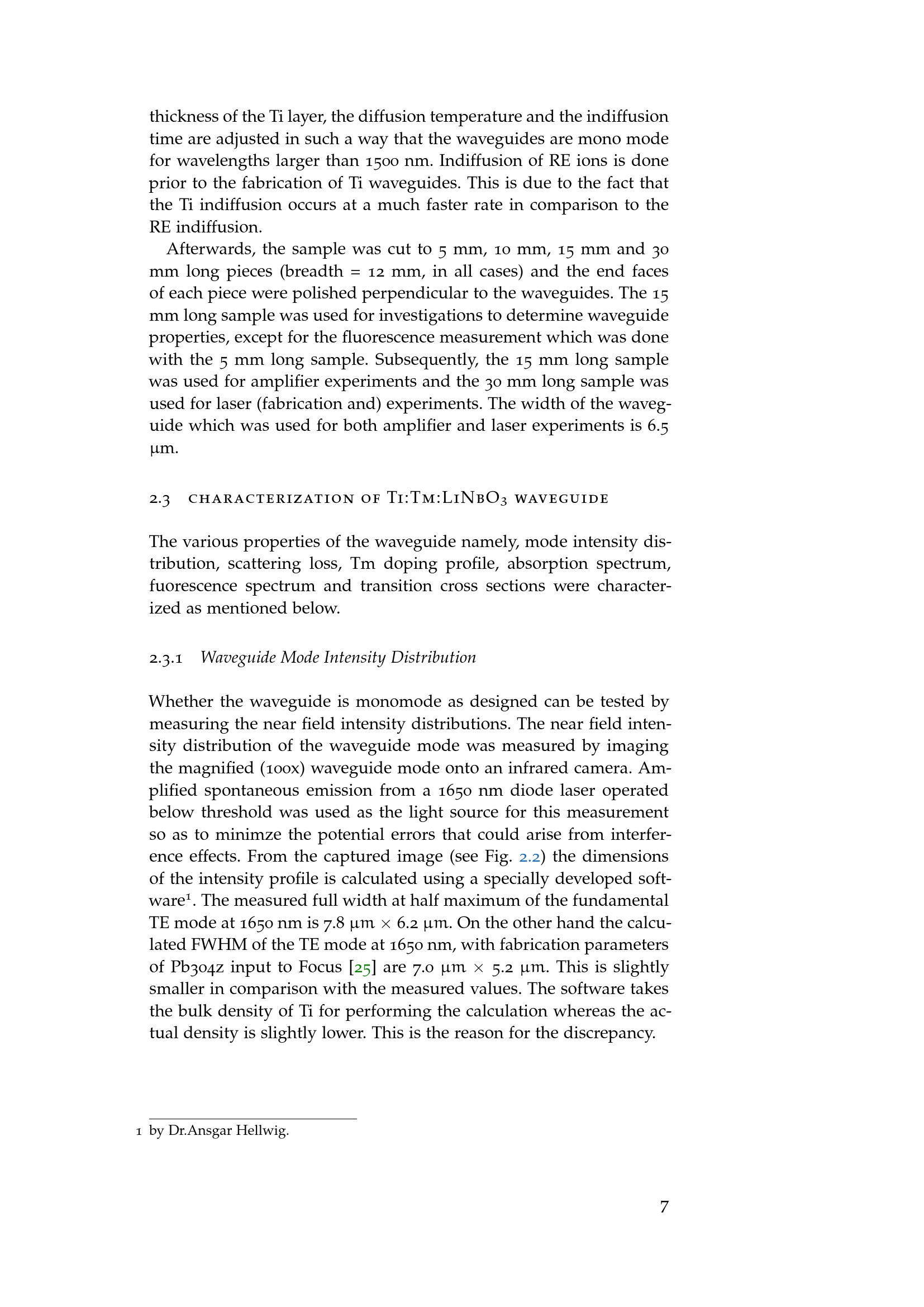 2.3 Characterization of Ti:Tm:LiNbO3 waveguide