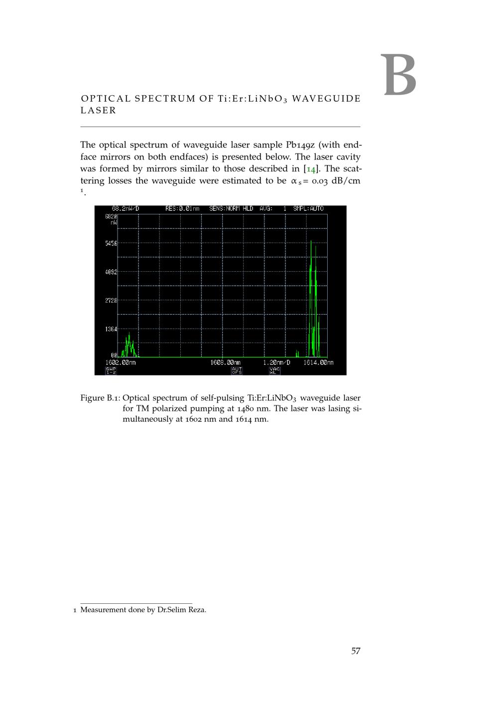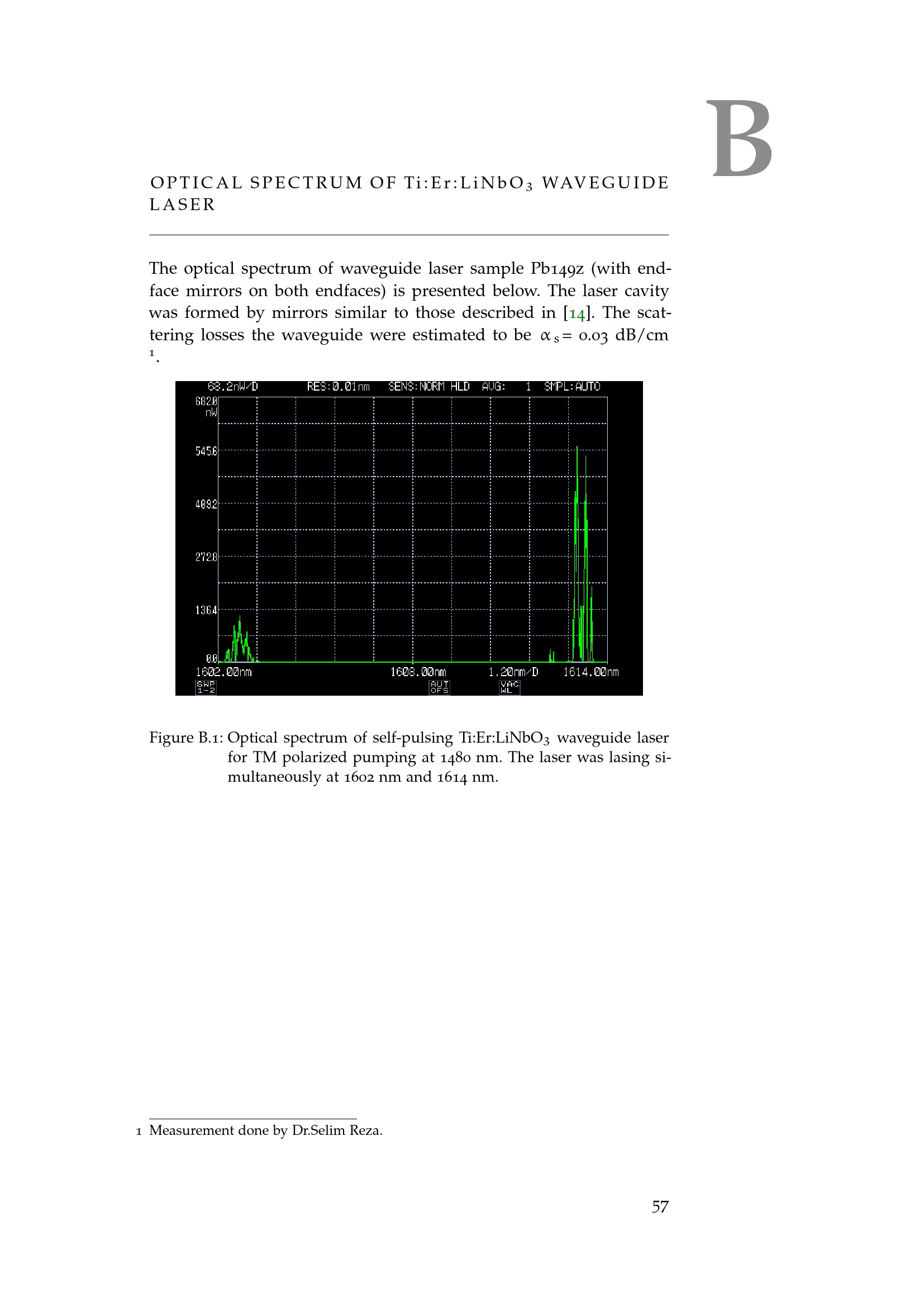 B Optical Spectrum of Ti:Er:LiNbO3 Waveguide Laser