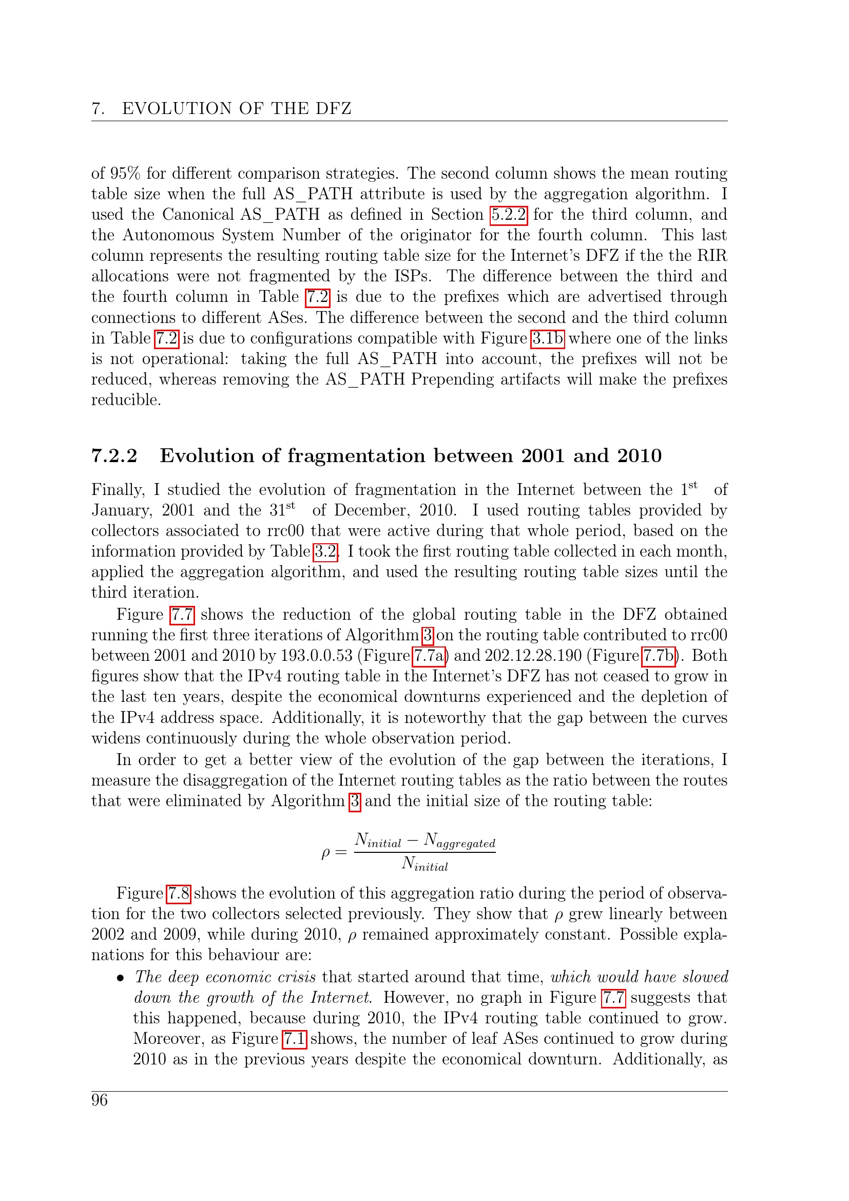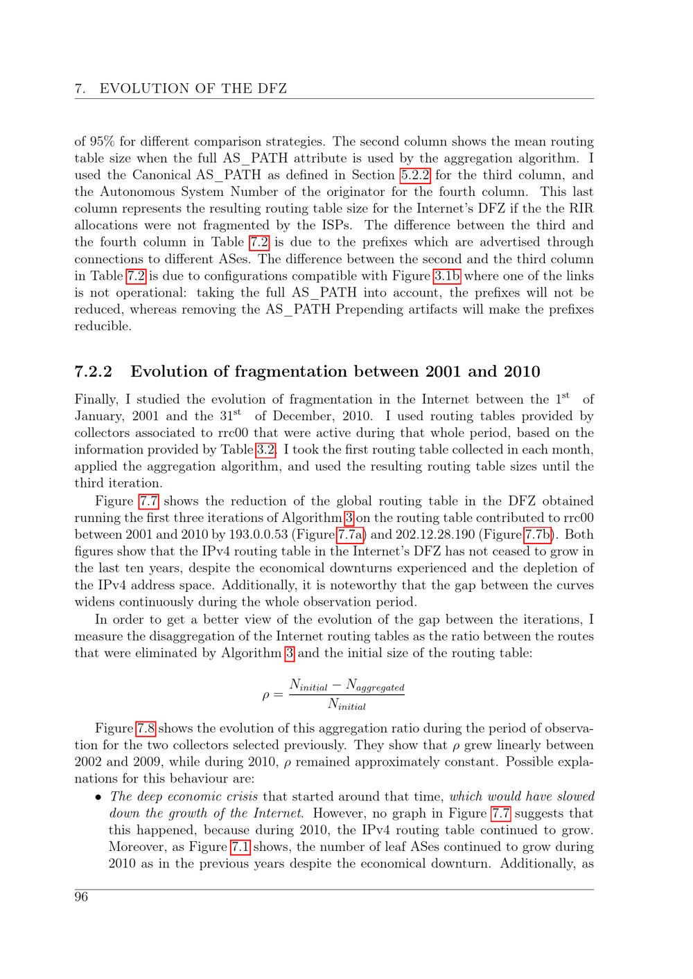Evolution of fragmentation between 2001 and 2010