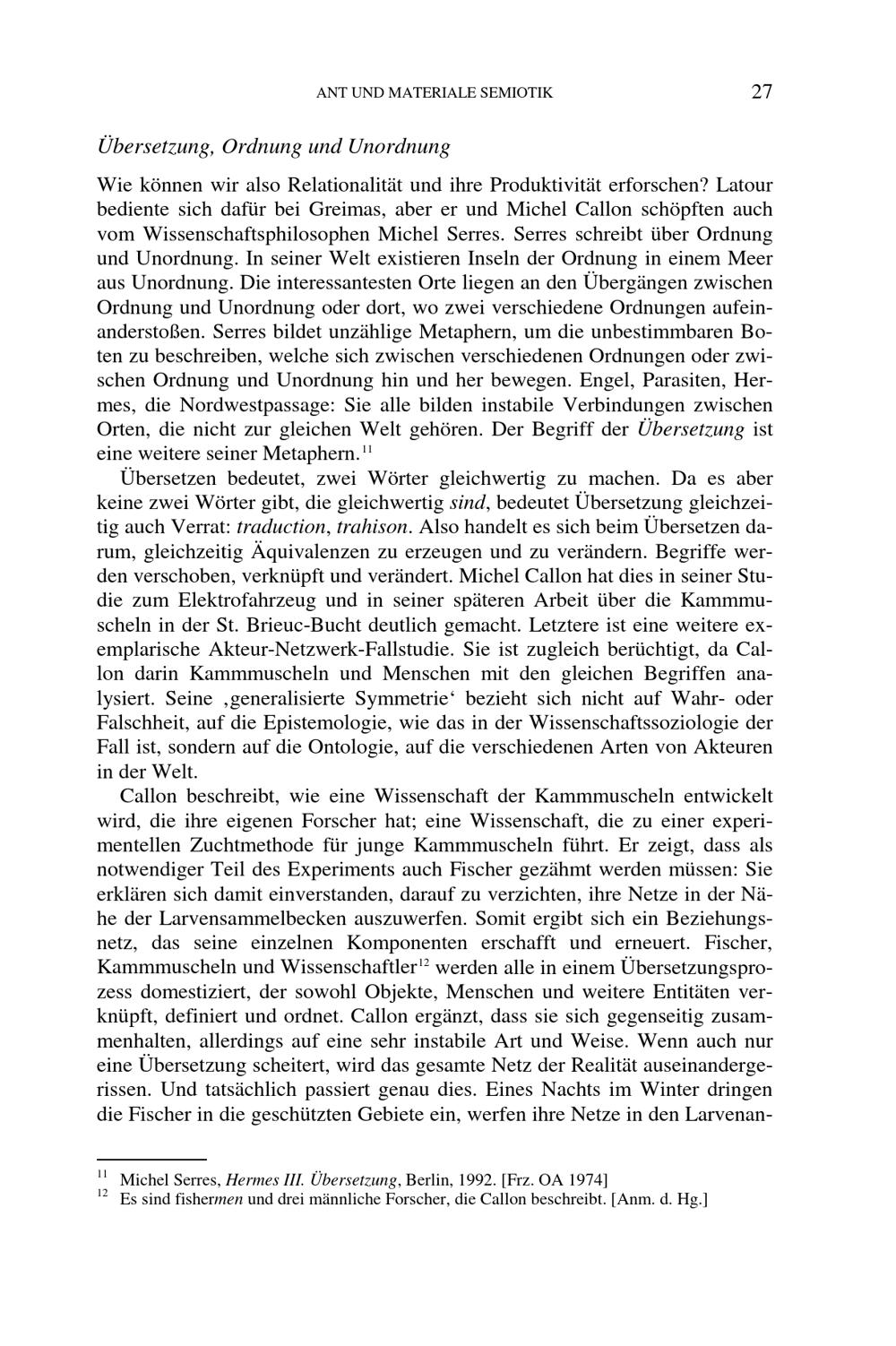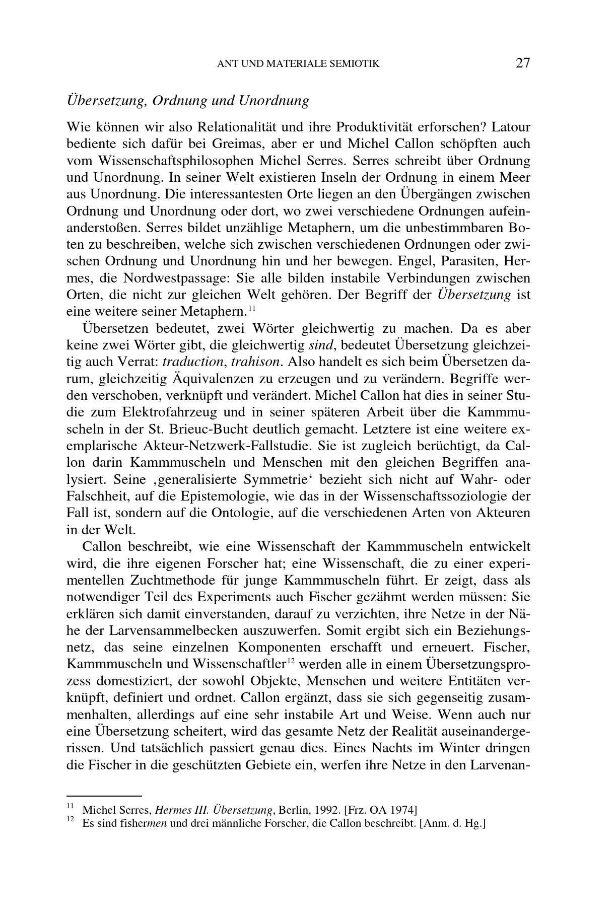 Übersetzung, Ordnung und Unordnung