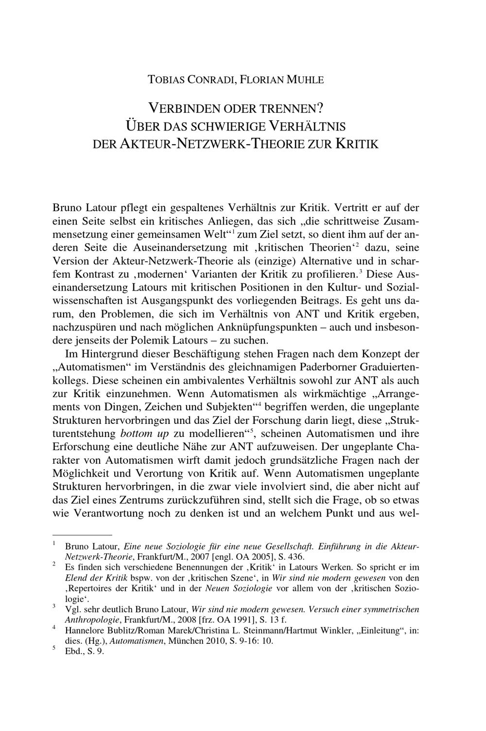 Strukturentstehung durch Verflechtung : Akteur-Netzwerk-Theorie(n) und Automatismen / Tobias Conradi, Heike Derwanz, Florian Muhle (Hrsg.)