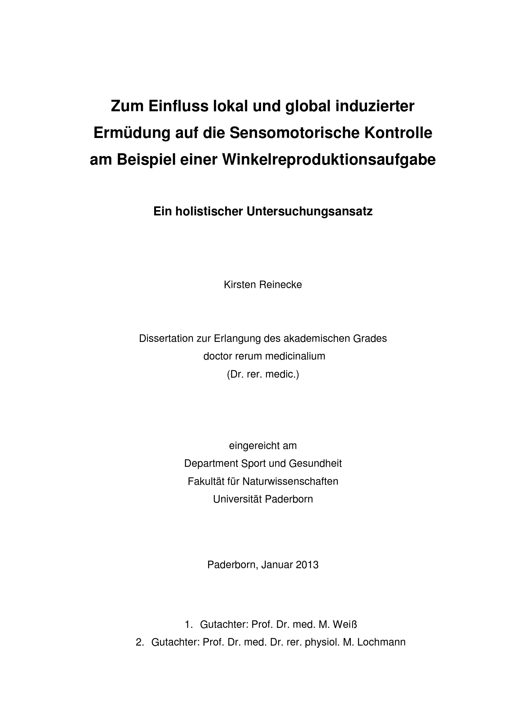 Zum Einfluss lokal und global induzierter Ermüdung auf die Sensomotorische Kontrolle am Beispiel einer Winkelreproduktionsaufgabe : Ein holistischer Untersuchungsansatz