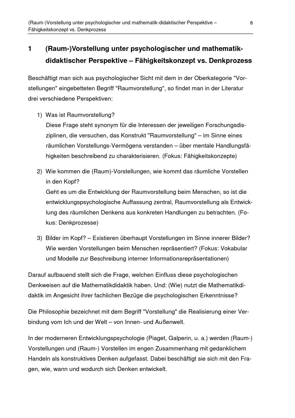1 (Raum-)Vorstellung unter psychologischer und mathematik-didaktischer Perspektive[...]