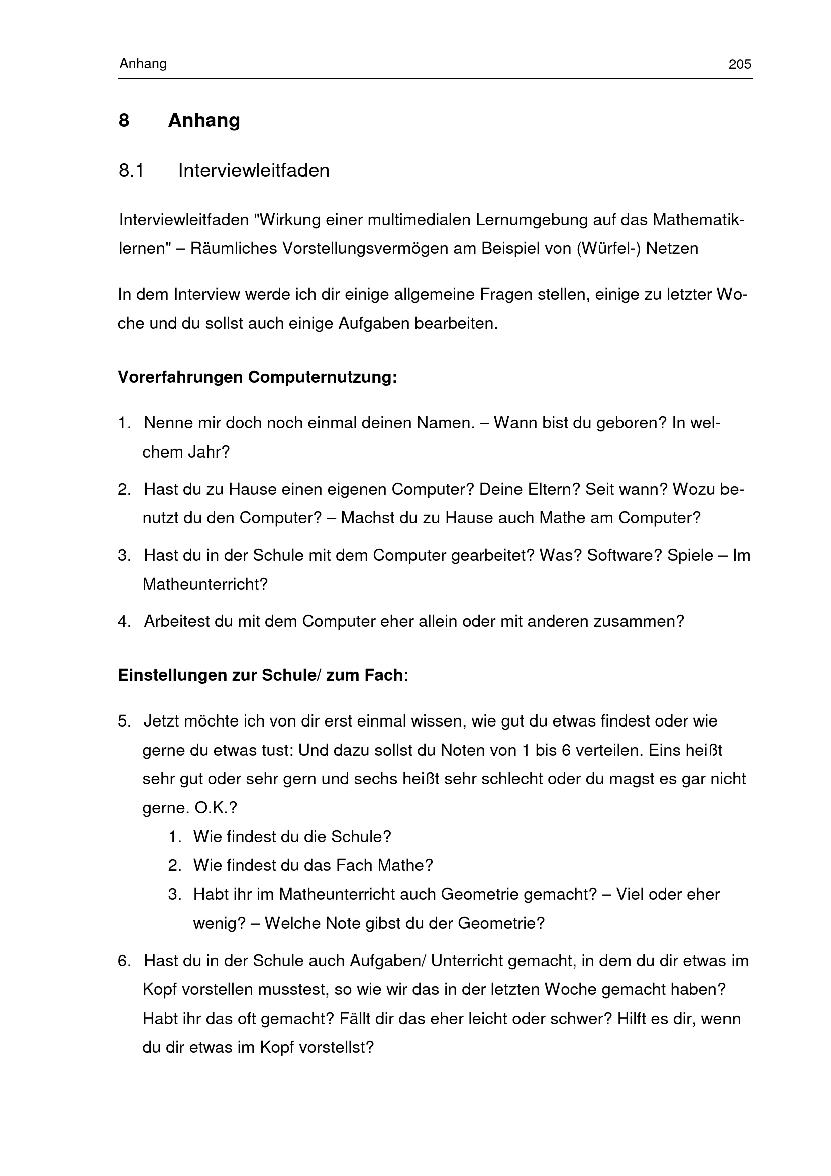 8.1 Interviewleitfaden