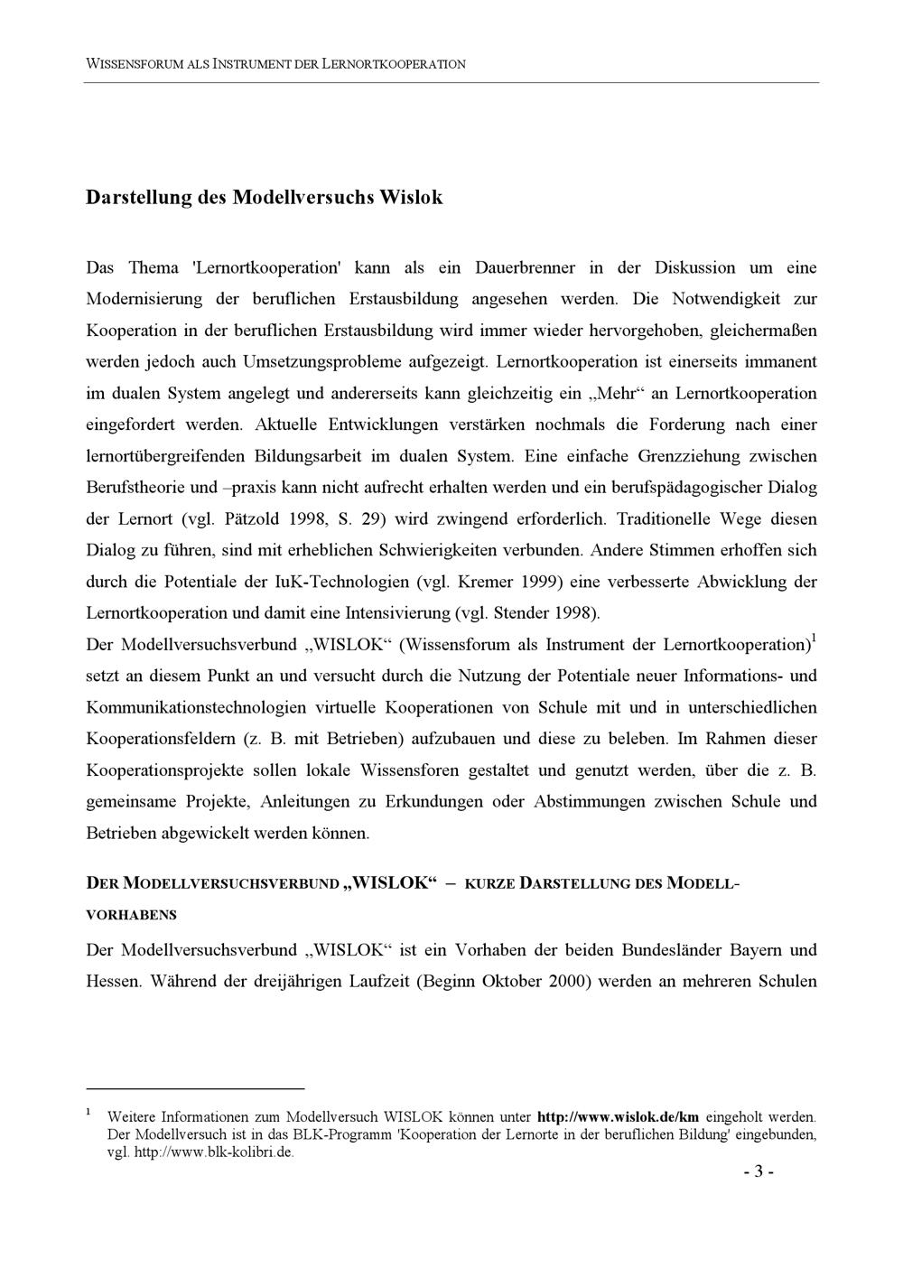Modellversuch WisLok : Wissensforen als Instrumente der Lernortkooperation ; Projektbericht