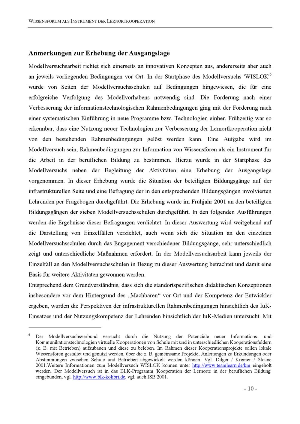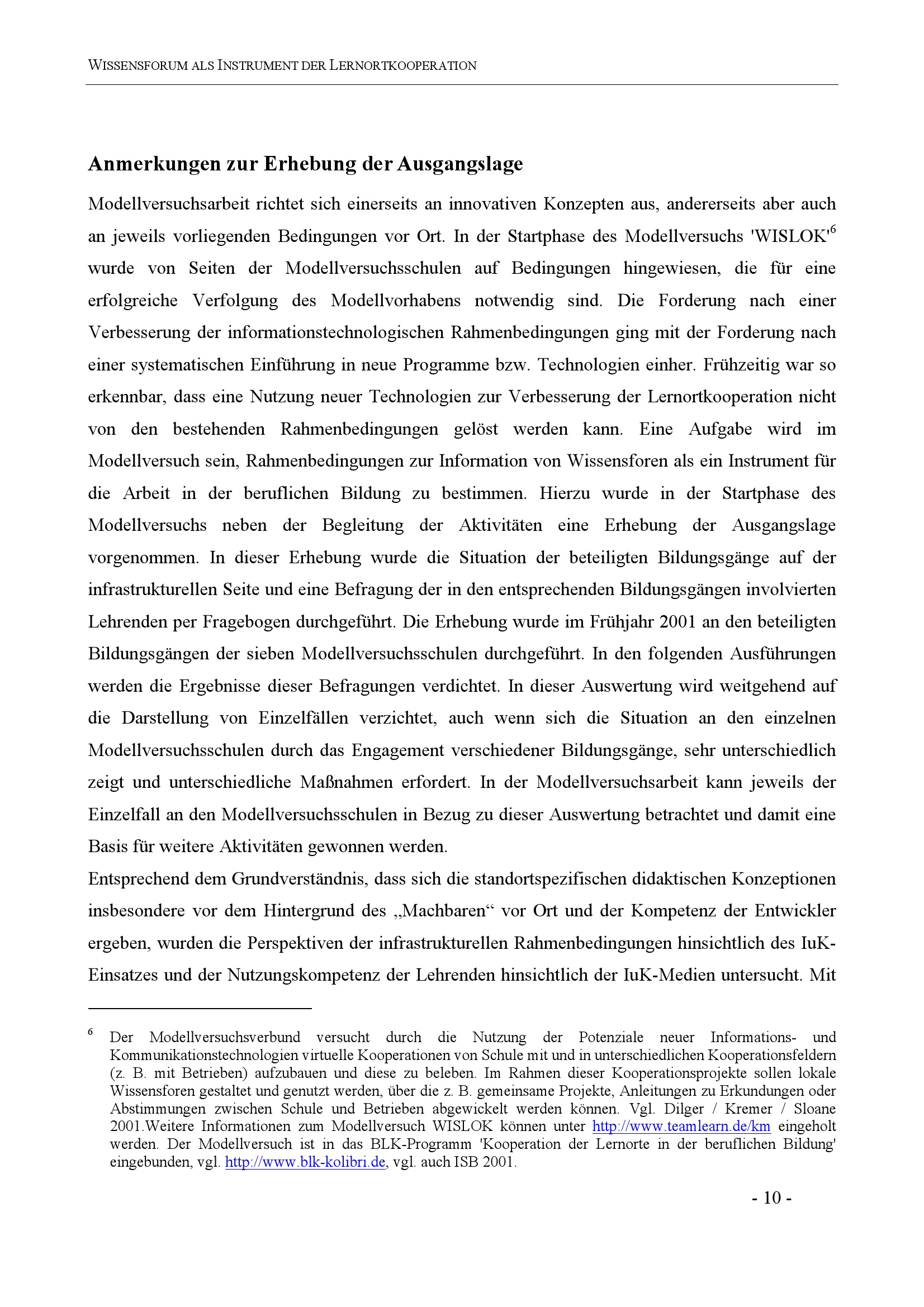 Modellversuch WisLok : Wissensforen als Instrumente der Lernortkooperation ; Projektbericht