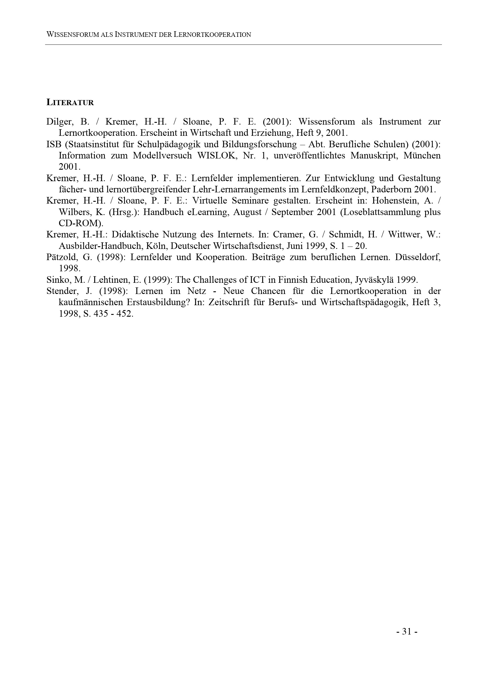 Modellversuch WisLok : Wissensforen als Instrumente der Lernortkooperation ; Projektbericht
