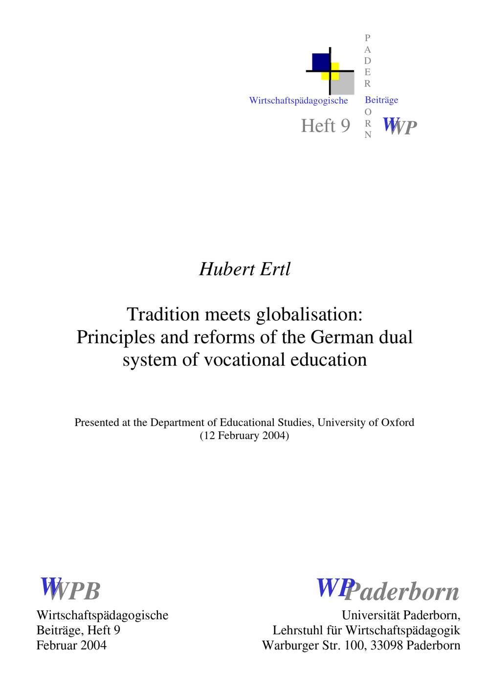 Tradition meets globalisation : principles and reforms of the German dual system of vocational education ; presented at the Department of Educational Studies, University of Oxford