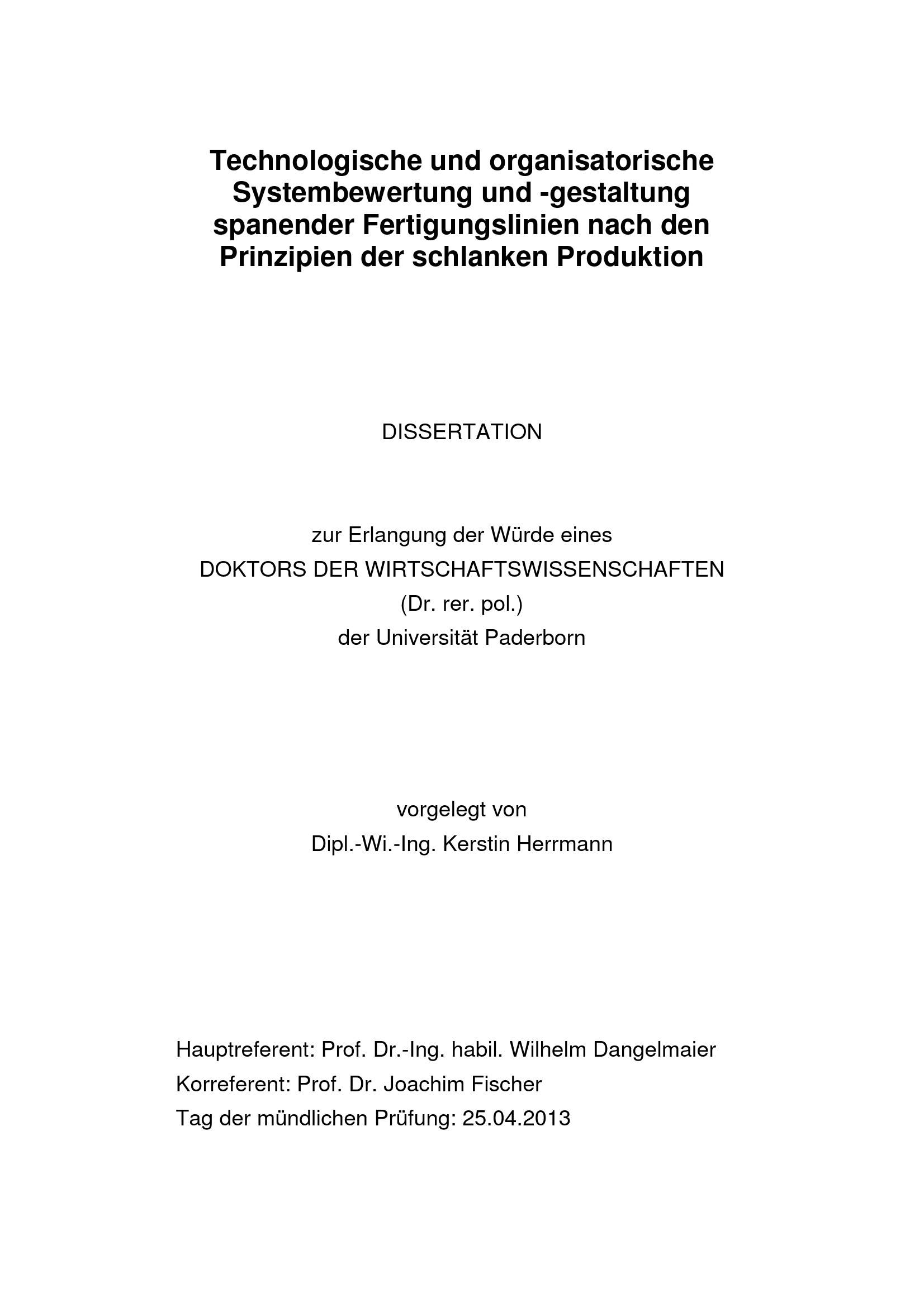 Technologische und organisatorische Systembewertung und -gestaltung spanender Fertigungslinien nach den Prinzipien der schlanken Produktion