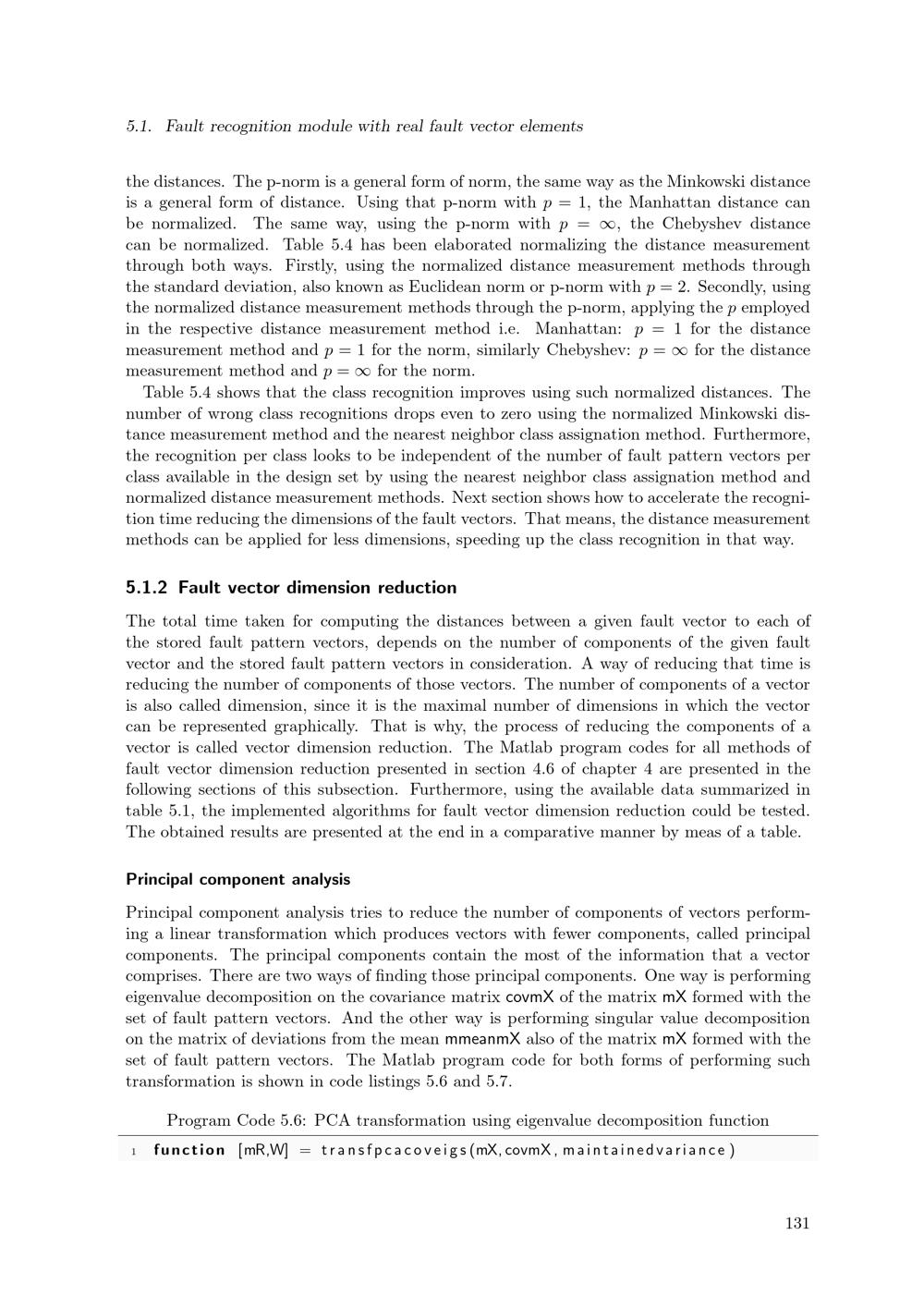 Fault recognition module with real fault vector elements