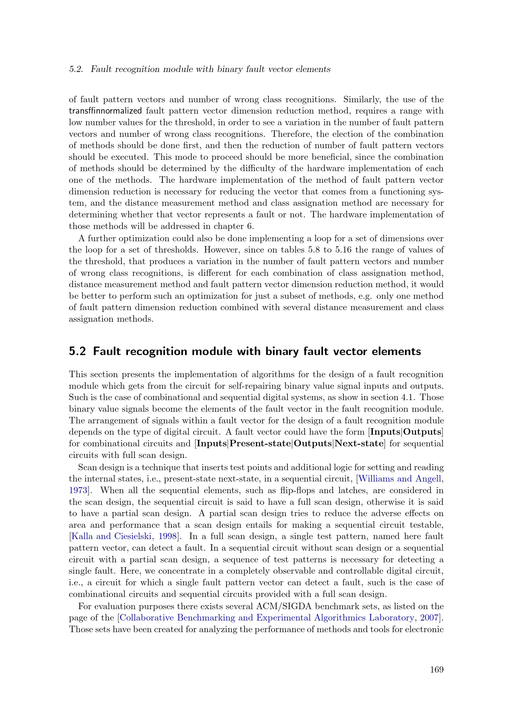 Fault recognition module with binary fault vector elements