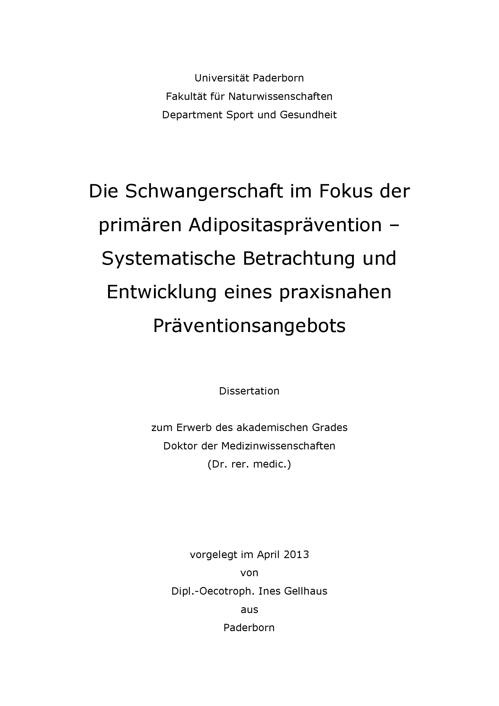 Die Schwangerschaft im Fokus der primären Adipositasprävention : systematische Betrachtung und Entwicklung eines praxisnahen Präventionsangebots