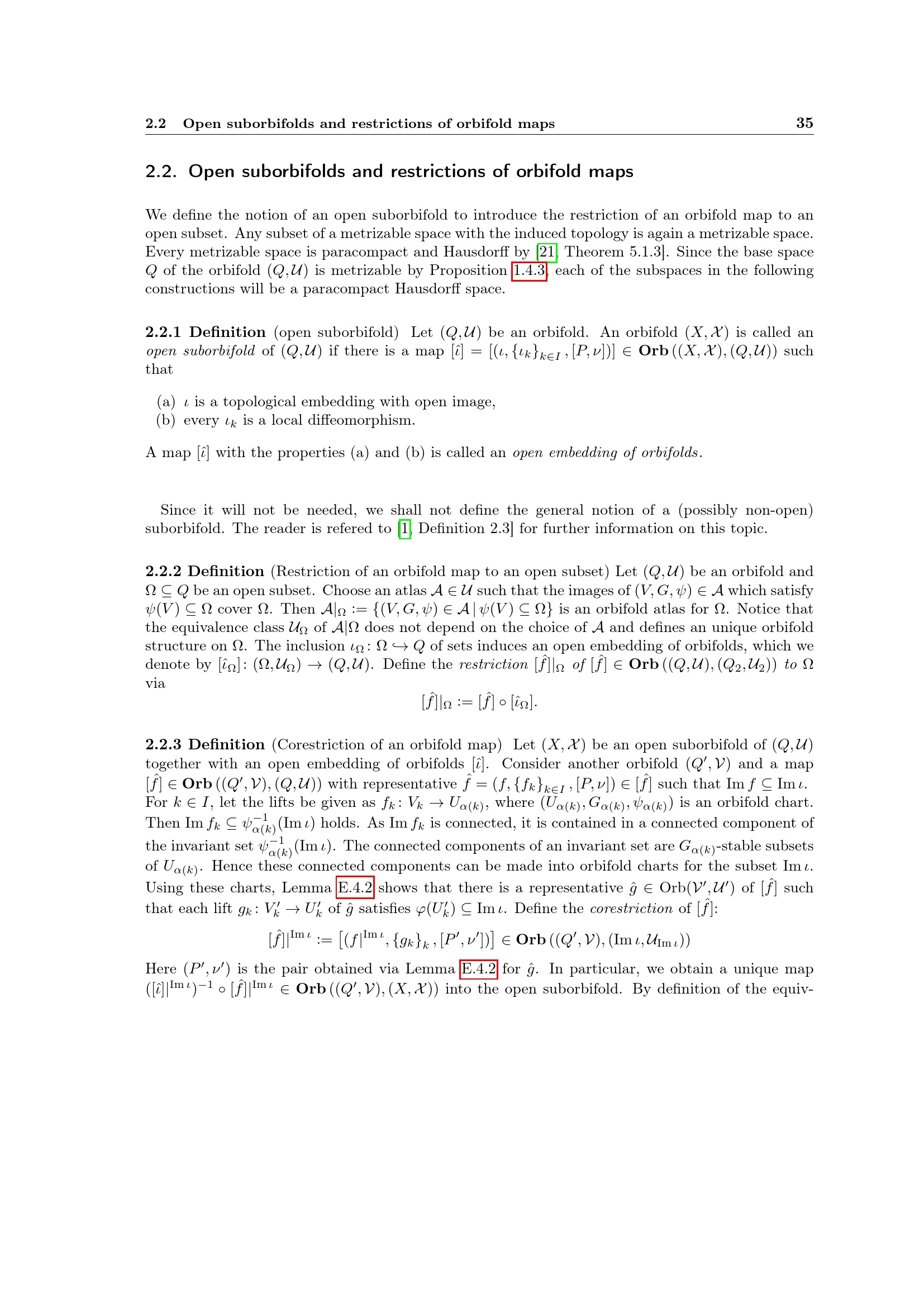 2.2 Open suborbifolds and restrictions of orbifold maps