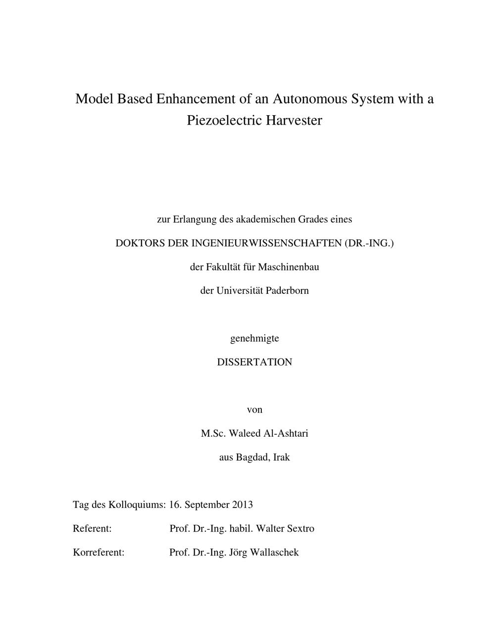Model based enhancement of an autonomous system with a piezoelectric harvester