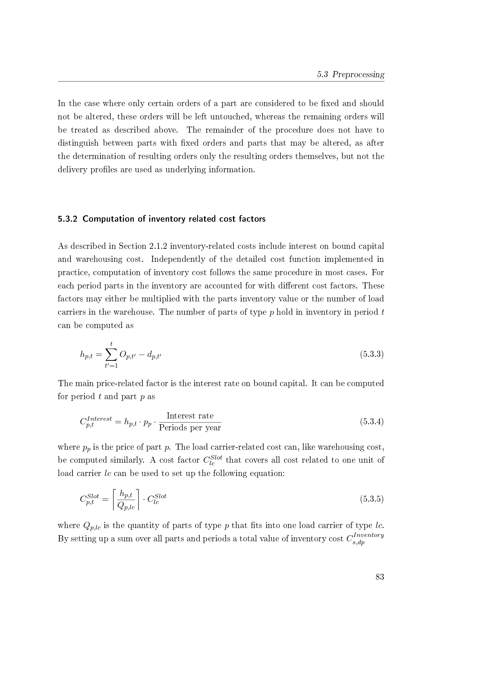 Computation of inventory related cost factors
