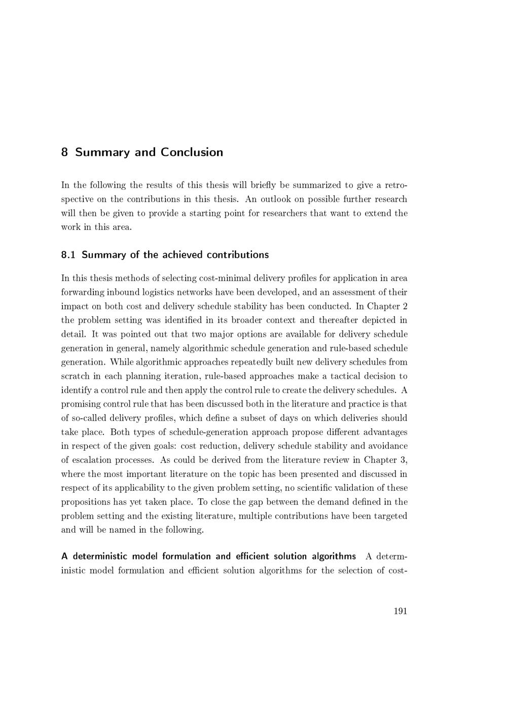 Summary of the achieved contributions