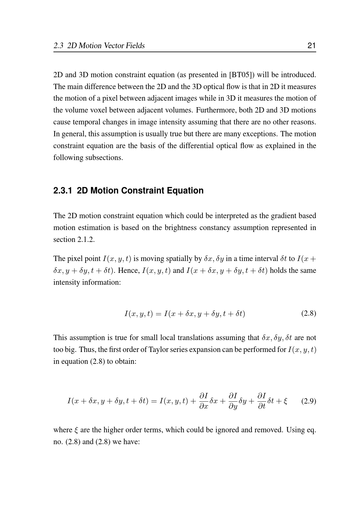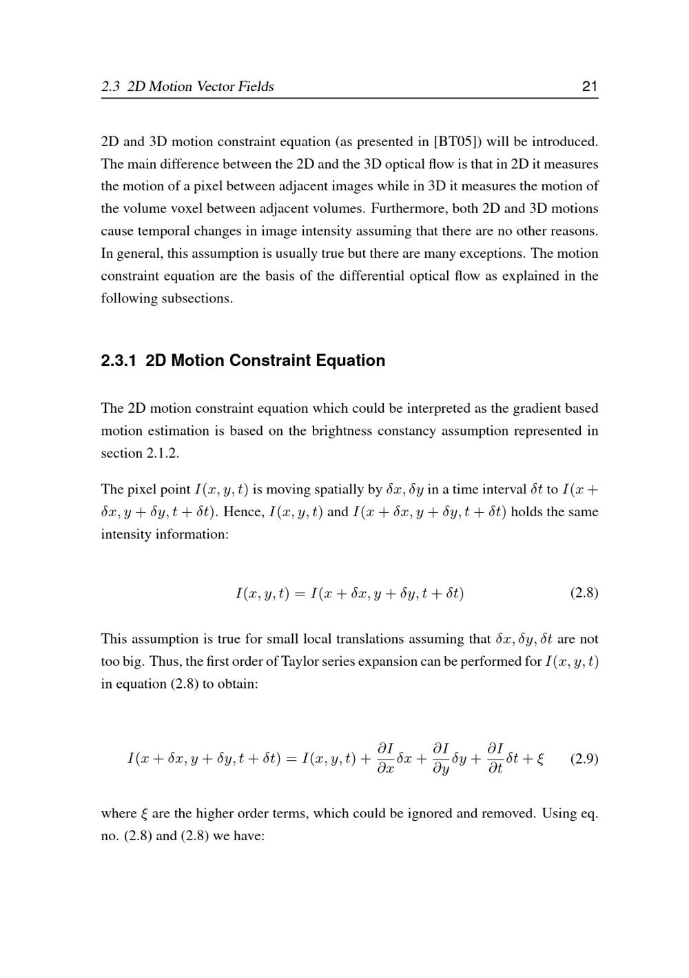 2D Motion Constraint Equation