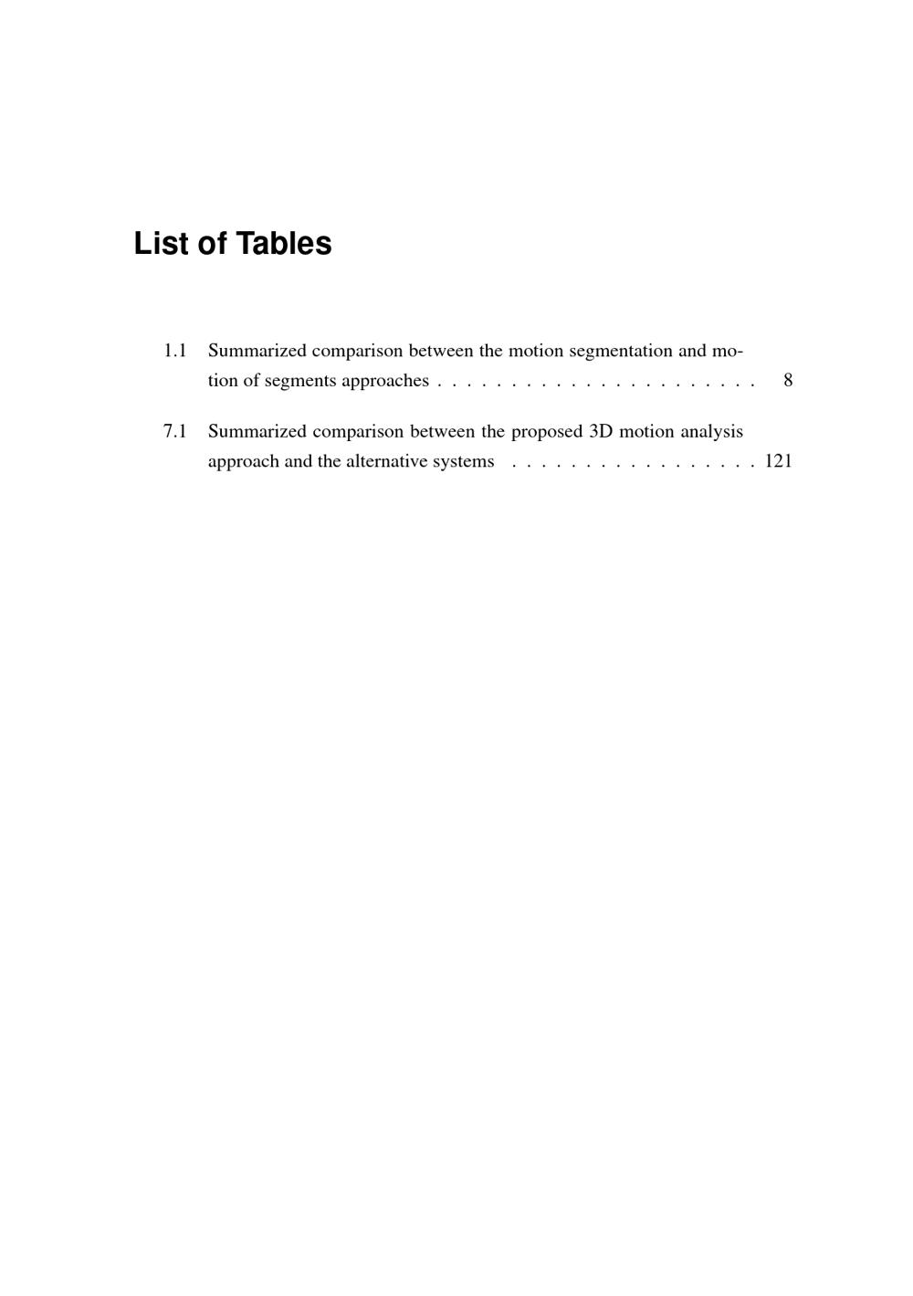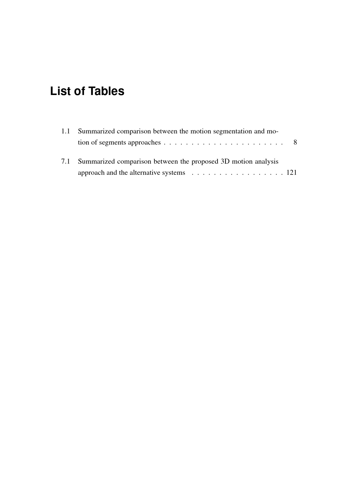 List of Tables