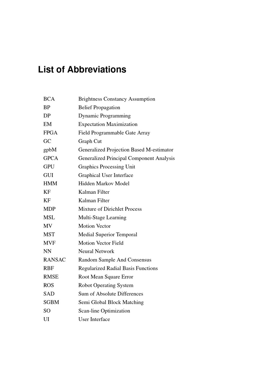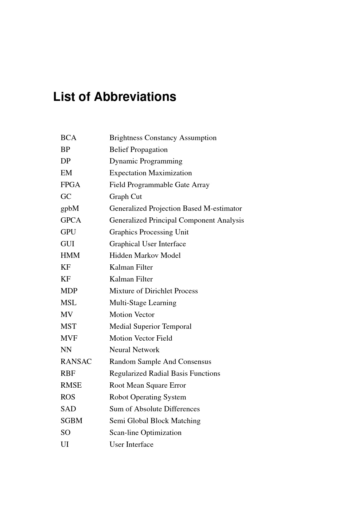 List of Abbreviations