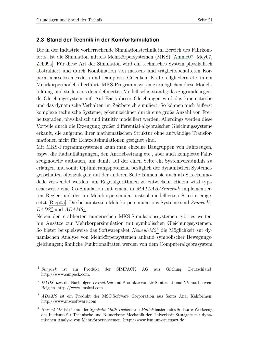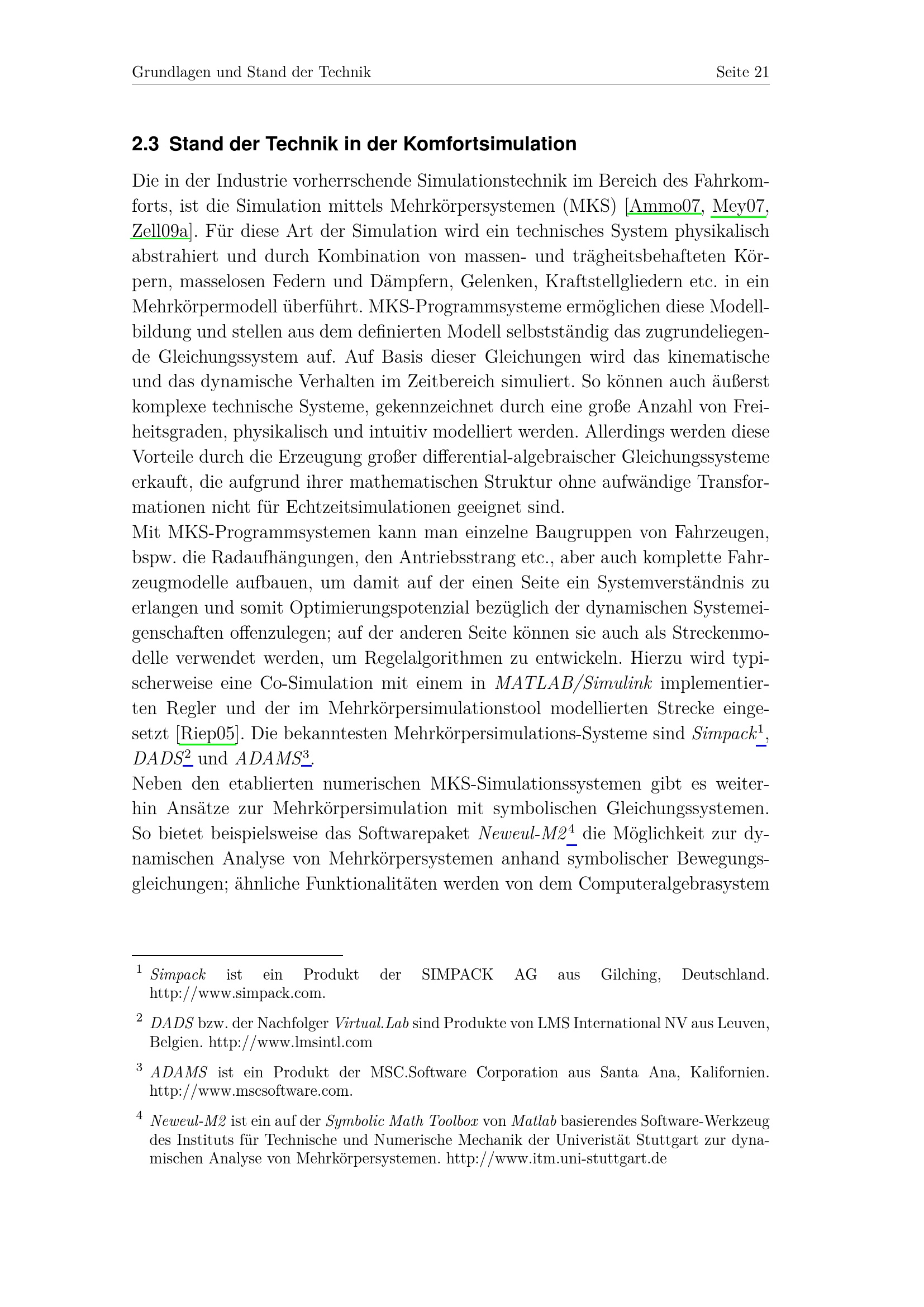 Stand der Technik in der Komfortsimulation