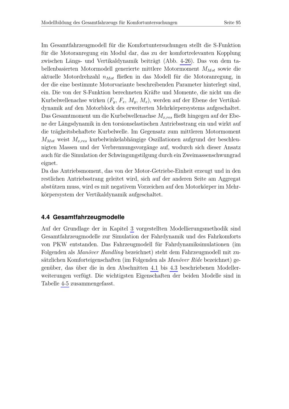 Modellbildung des Gesamtfahrzeugs für Komfortuntersuchungen