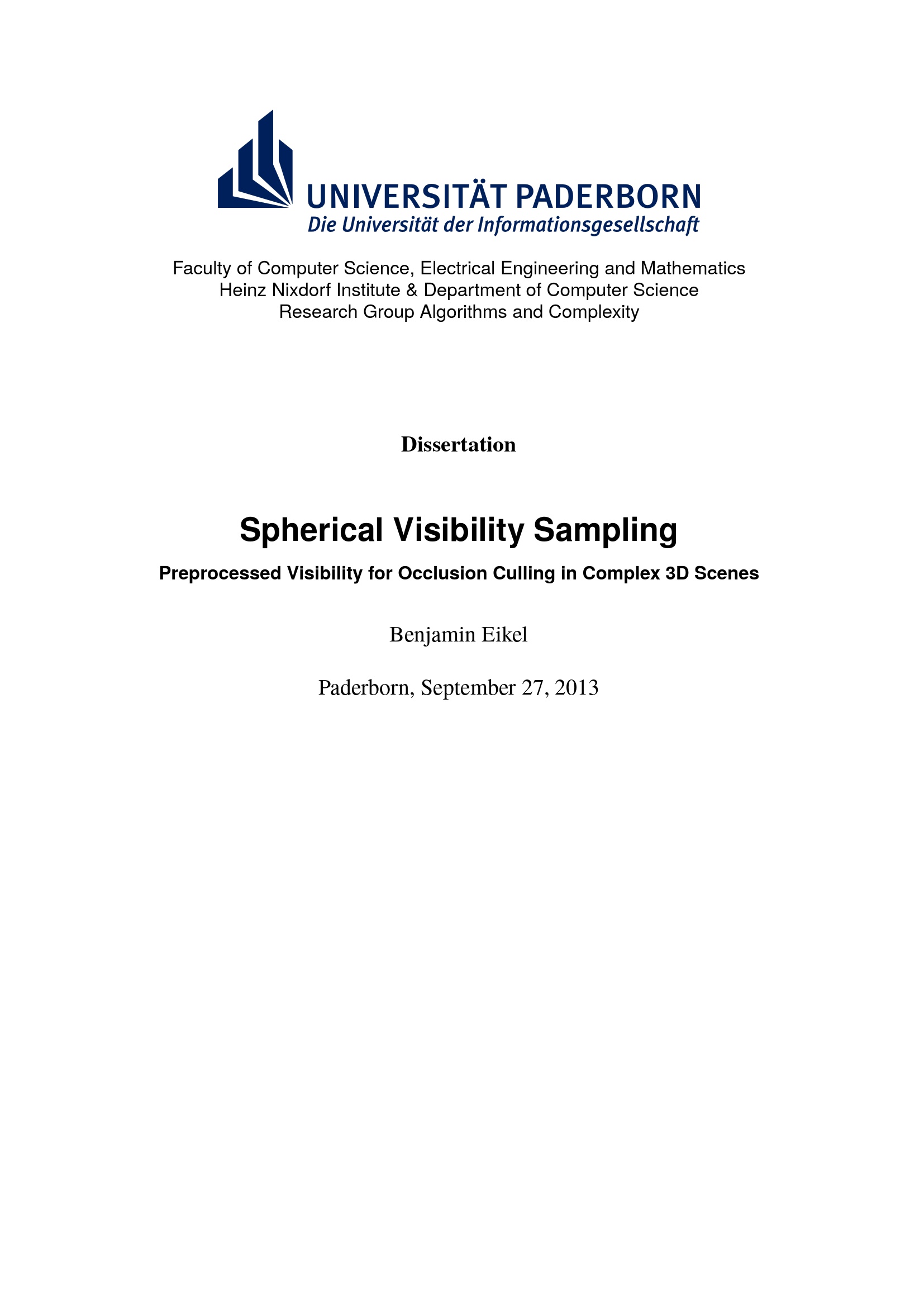 Spherical visibility sampling : preprocessed visibility for occlusion culling in complex 3D scenes